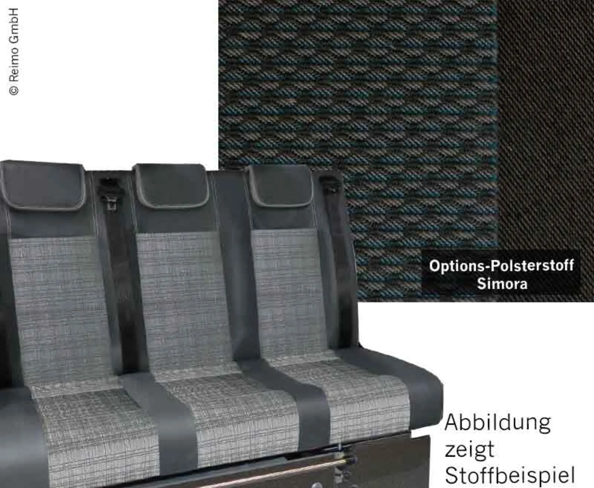 banquette-lit 3 personnes VW T6/5 Trio Style V3000 Gr.10 déplaçable et amovible, distance entre les rails 651 mm. Banquette-lit avec support Isofix pour 2 sièges enfants.