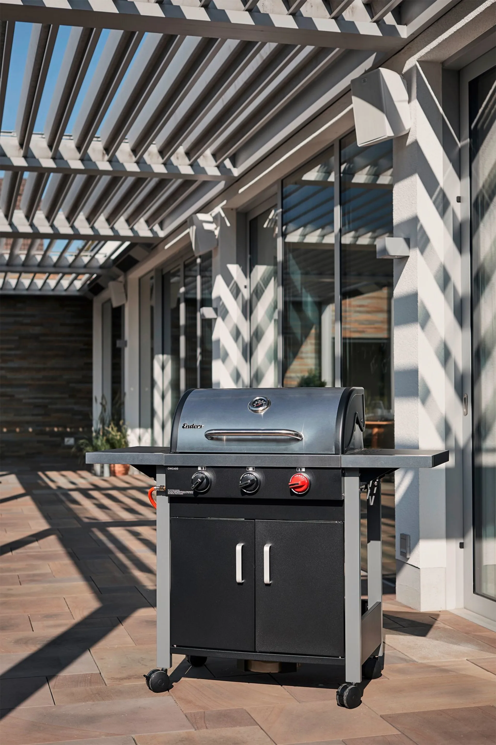 Avec le nouveau barbecue à gaz Chicago 3 R TURBO, tu fais toujours un pas dans la bonne direction : vers l'extérieur. Trois brûleurs puissants en acier inoxydable pour une cuisson directe et indirecte fournissent avec précision les grillades que tes invités attendent avec impatience. Les étagères latérales robustes et rabattables facilitent la manipulation du barbecue, tandis que le tiroir à graisse amovible te permet d'éliminer facilement ta graisse. Avec sa bouteille de gaz discrètement rangée dans le meuble inférieur, le Chicago 3 R TURBO est également un régal pour les yeux.
