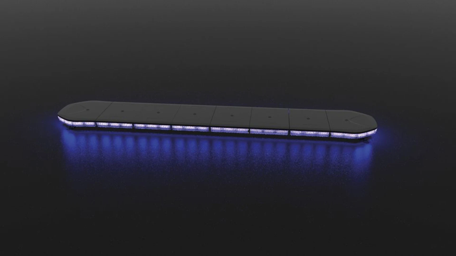 Barre de toit LED ultraplate avec 10 modèles d'éclairs programmables différents. Couleur de l'éclair : bleu Classe de protection : IP67 Test : ECE R10, R65 rouge=plus (+) noir=masse (-) jaune=programmation modèle d'éclair sur (+)