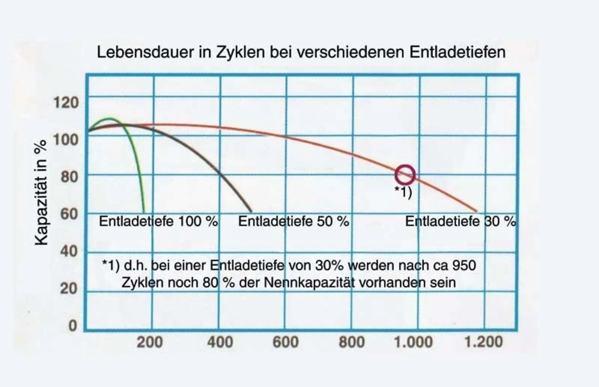 Données : 12 volts, valeurs Ah dans le tableau : *pour une décharge de 100 heures, ** pour une décharge de 20 heures