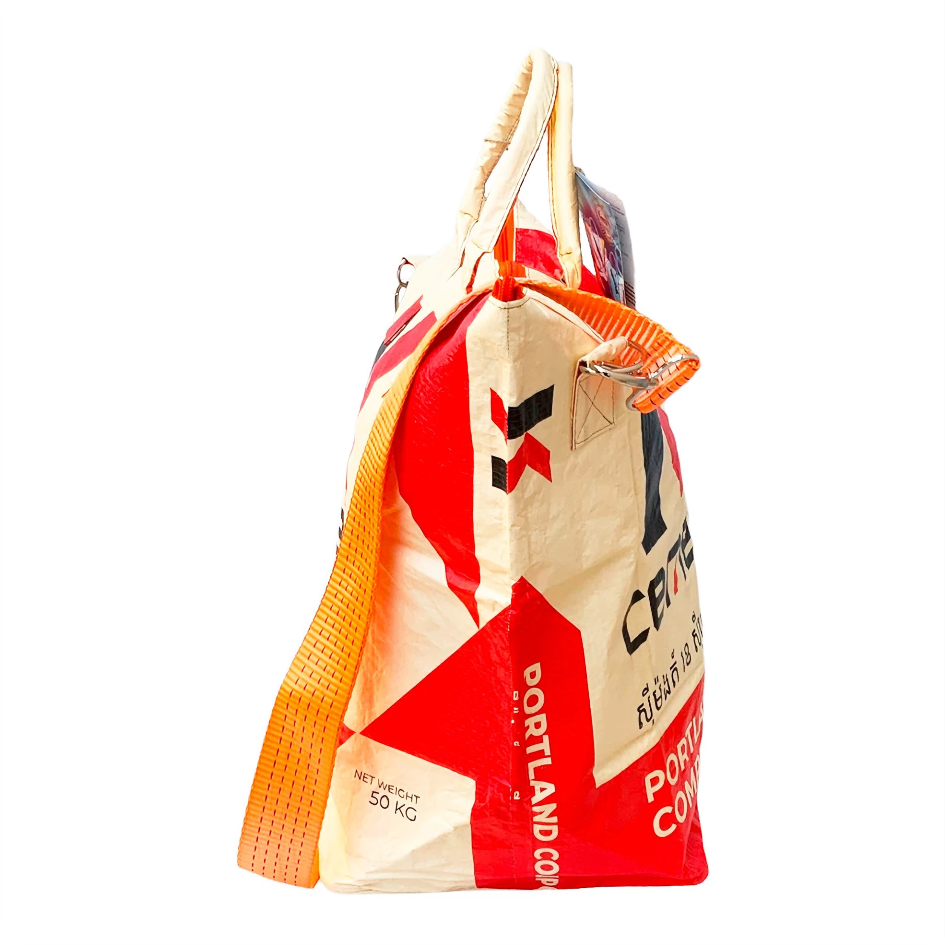 Mit ultrastrapazierfähigem, orangenem Schultergurt, welcher ursprünglich als Schiffscontainerspanngurt im Hamburger Hafen diente. Der abnehmbare Tragegurt vereinfacht das Transportieren um ein Vielfaches! Er ist extrem widerstandsfähig, lässt sich super einfach abnehmen und ist somit auch für andere Taschen verwendbar. Umweltschonend durch Verwendung von recycelten Materialien. Hergestellt in Kambodscha unter strenger Kontrolle der World Fair Trade Organisation.