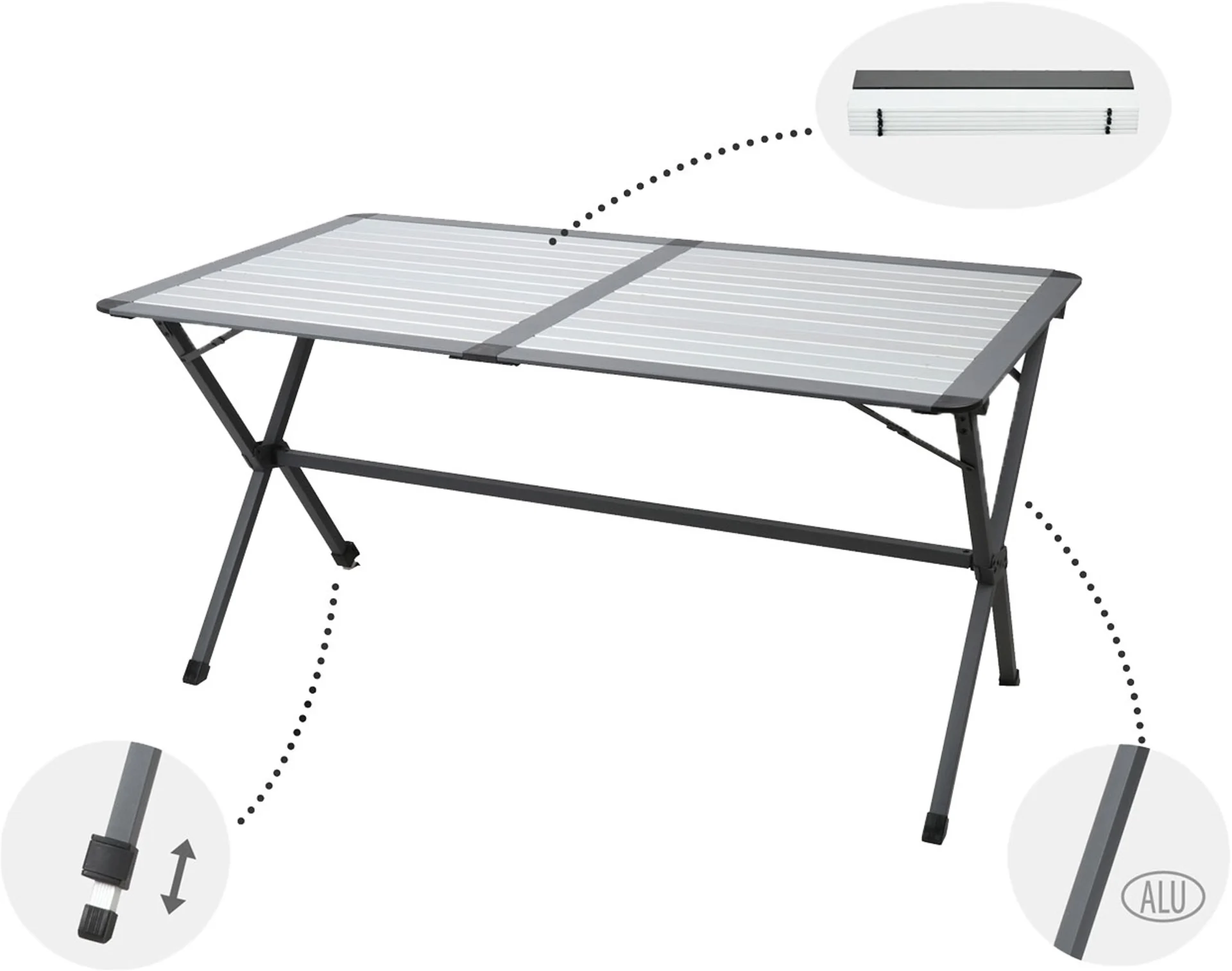 Unser Johannes ist ein echter Familienmensch. An ihn finden bis zu 6 Personen Platz. Er ist die richtige Wahl für Leute die gerne Besuch bekommen oder einfach viel Platz mögen. Und trotzdem kann der Tisch platzsparend in der mitgelieferten Tragetasche verstaut werden. Außerdem ist ein Tischbein in der Höhe verstellbar, um Unebenheiten des Bodens auszugleichen. Dank des Aluminiumgestells ist Johannes leicht zu transportieren. Zudem ist er aus recycelten PET-Flaschen hergestellt.