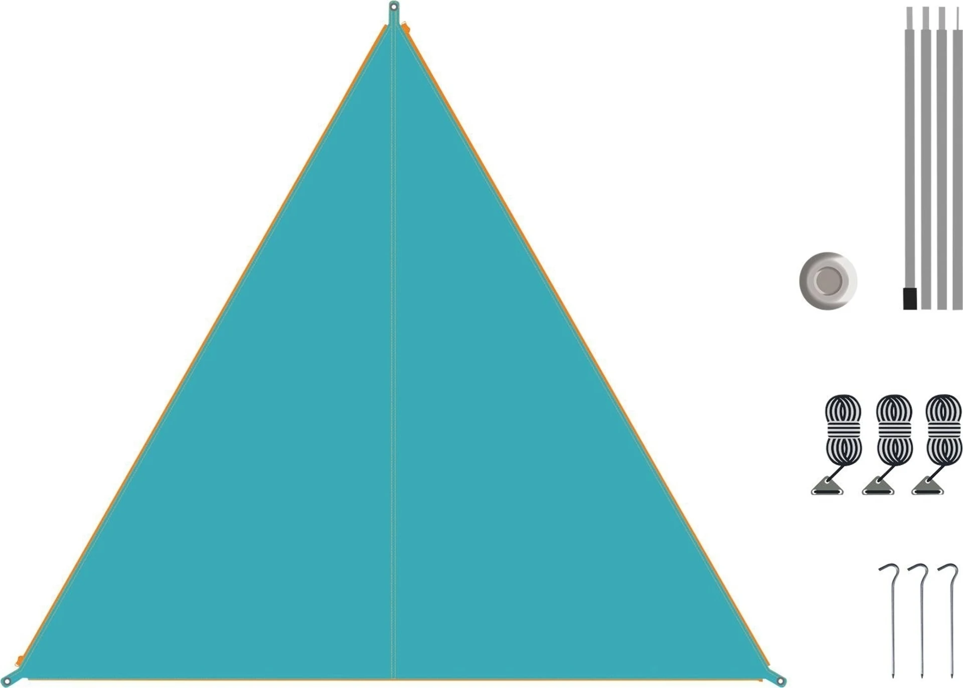 Livré avec 3 piquets, 3 cordes de haubanage avec stoppeurs en aluminium, perche en acier en 4 parties de 180 cm x 19 mm avec assiette en plastique.