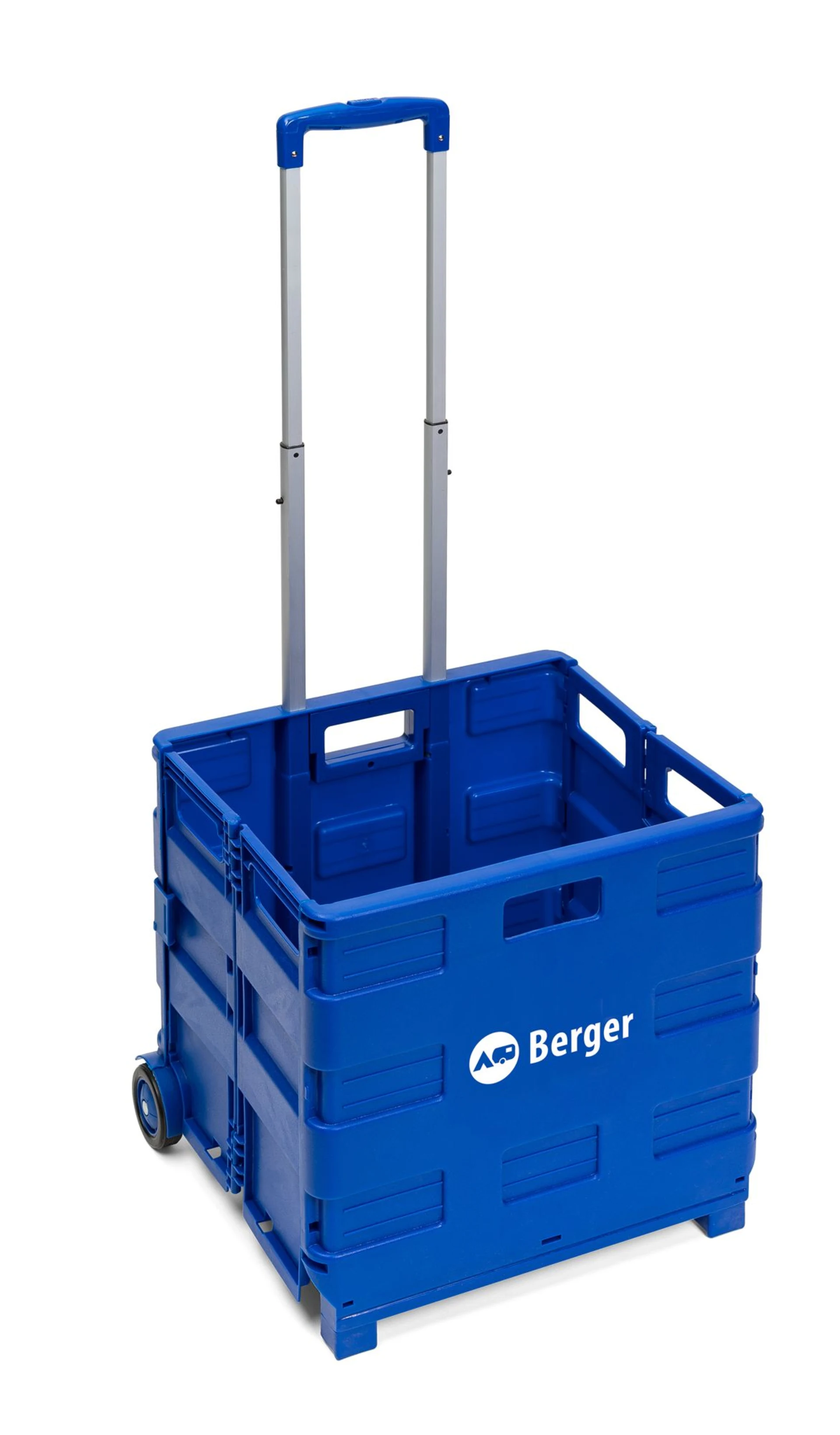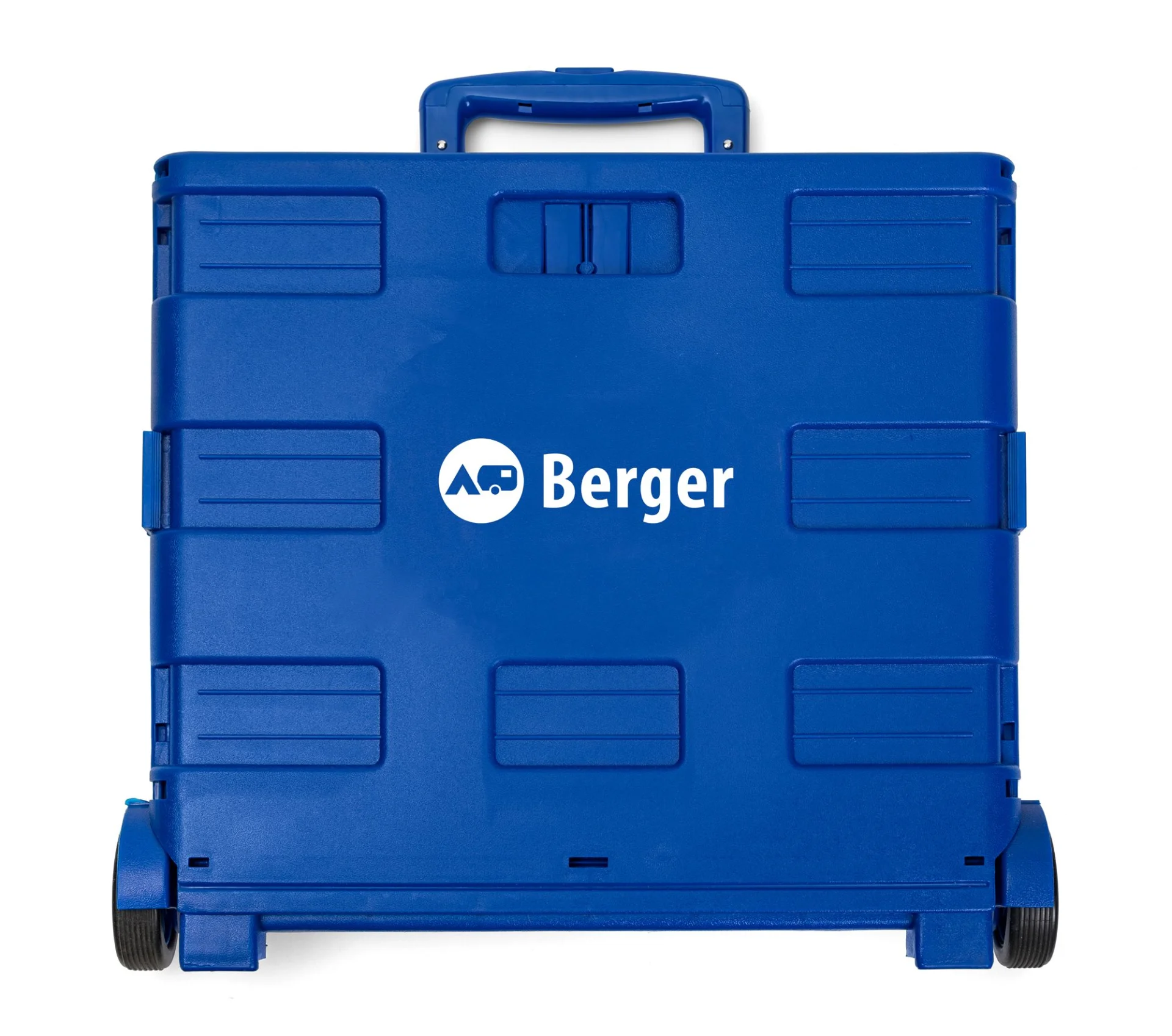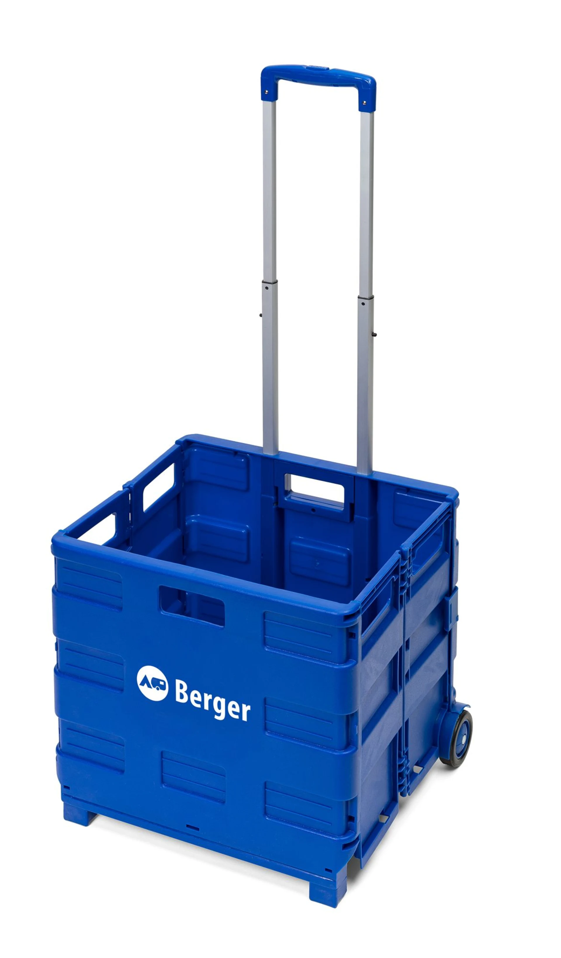 Avec notre trolley Berger, tout transport jusqu'à 30 kg peut être maîtrisé. Peu encombrant et pliable à plat. Matériau : polypropylène et aluminium.