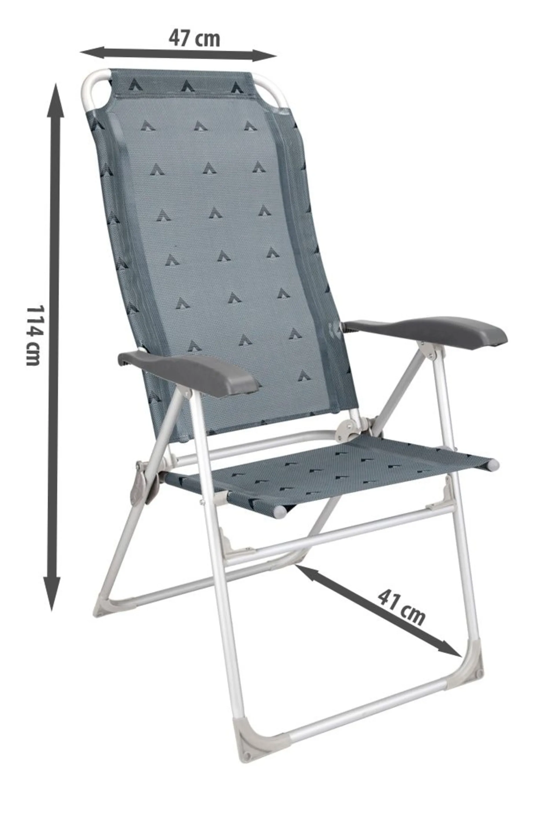Elle est dotée d'articulations métalliques robustes et d'une structure stable en tubes ronds d'aluminium. Le dossier est réglable sur 5 positions. La housse résistante aux intempéries et facile à entretenir est en fibre de polyester recouverte de polychlorure. Les accoudoirs sont en plastique solide.