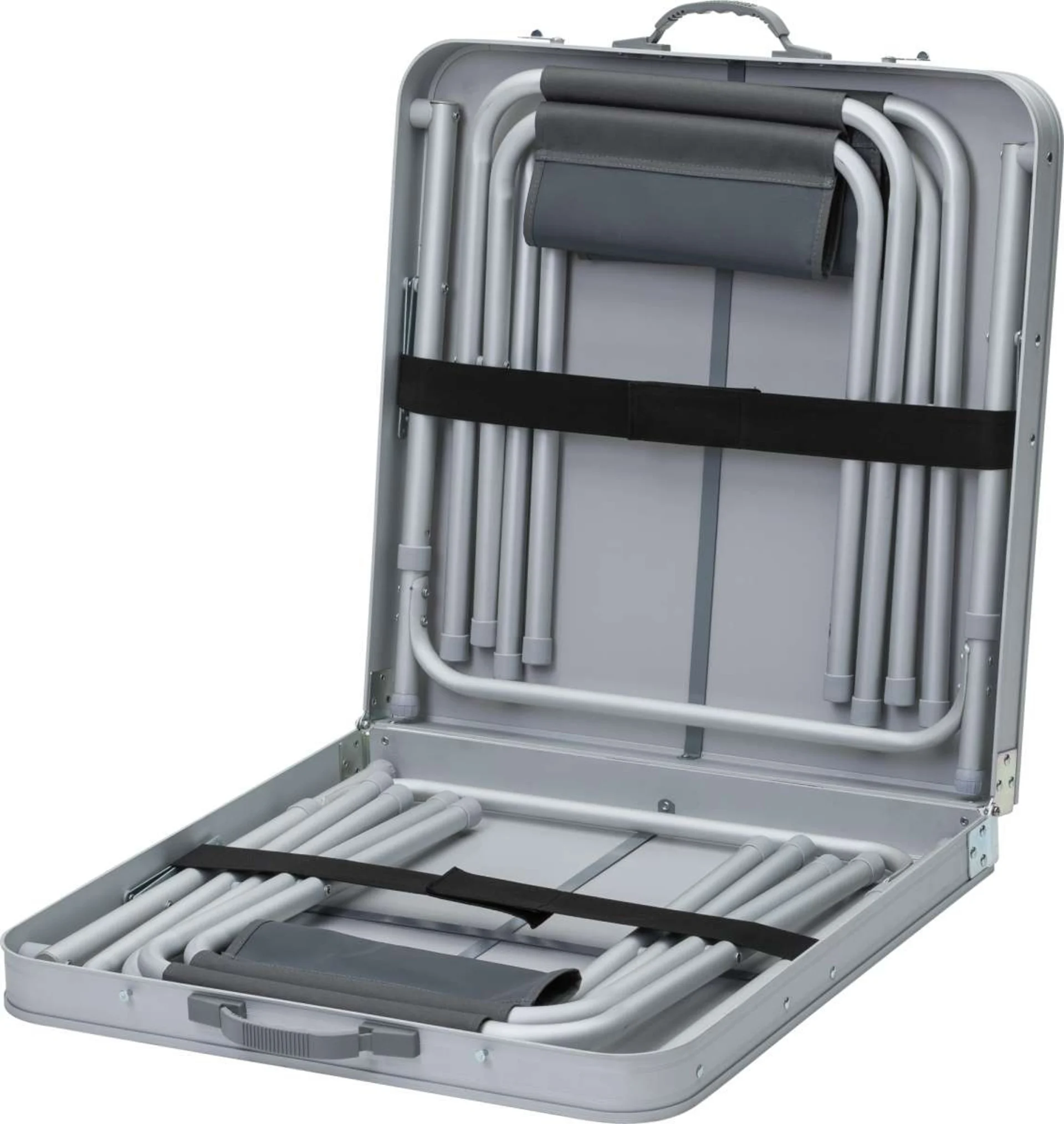 Cette table est le compagnon idéal pour tous ceux qui aiment la mobilité et la flexibilité. En un clin d'œil, les pieds de la table se replient et grâce à la poignée intégrée sur le côté, la table est aussi agréable à transporter qu'une valise.