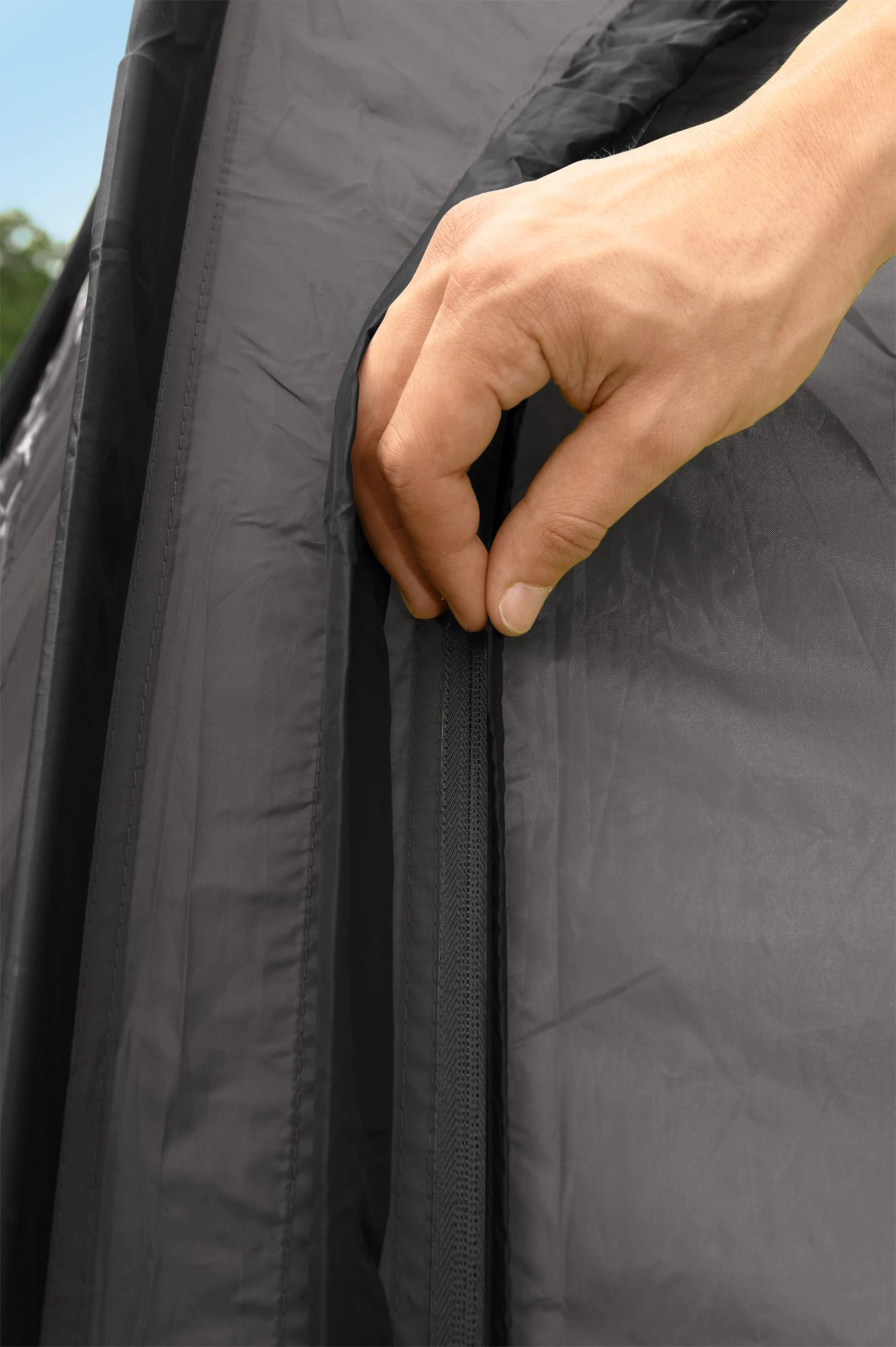 Das Zelt lässt sich bequem transportieren. Zusätzliche Features wie reflektierende Abspannleinen und ein praktischer Eingangsschutz machen es zum perfekten Begleiter für Outdoor-Abenteuer.