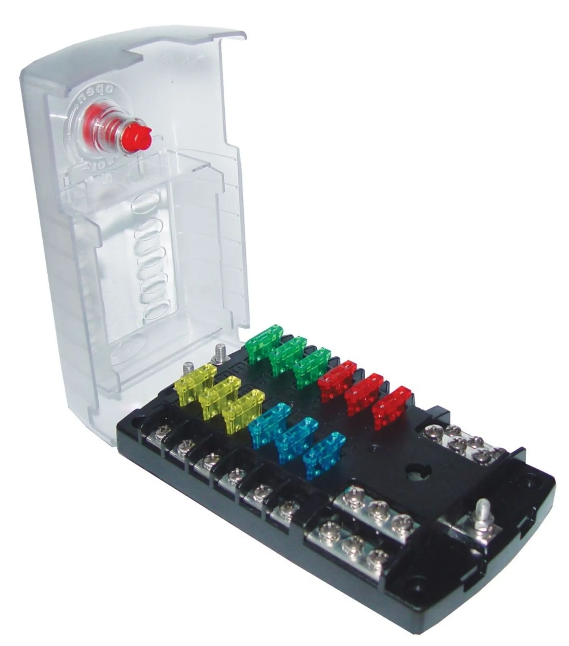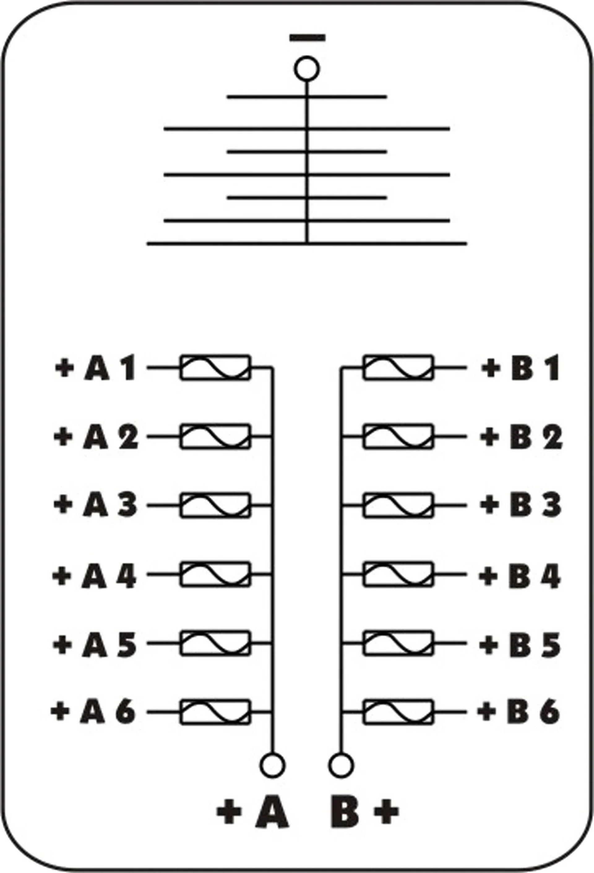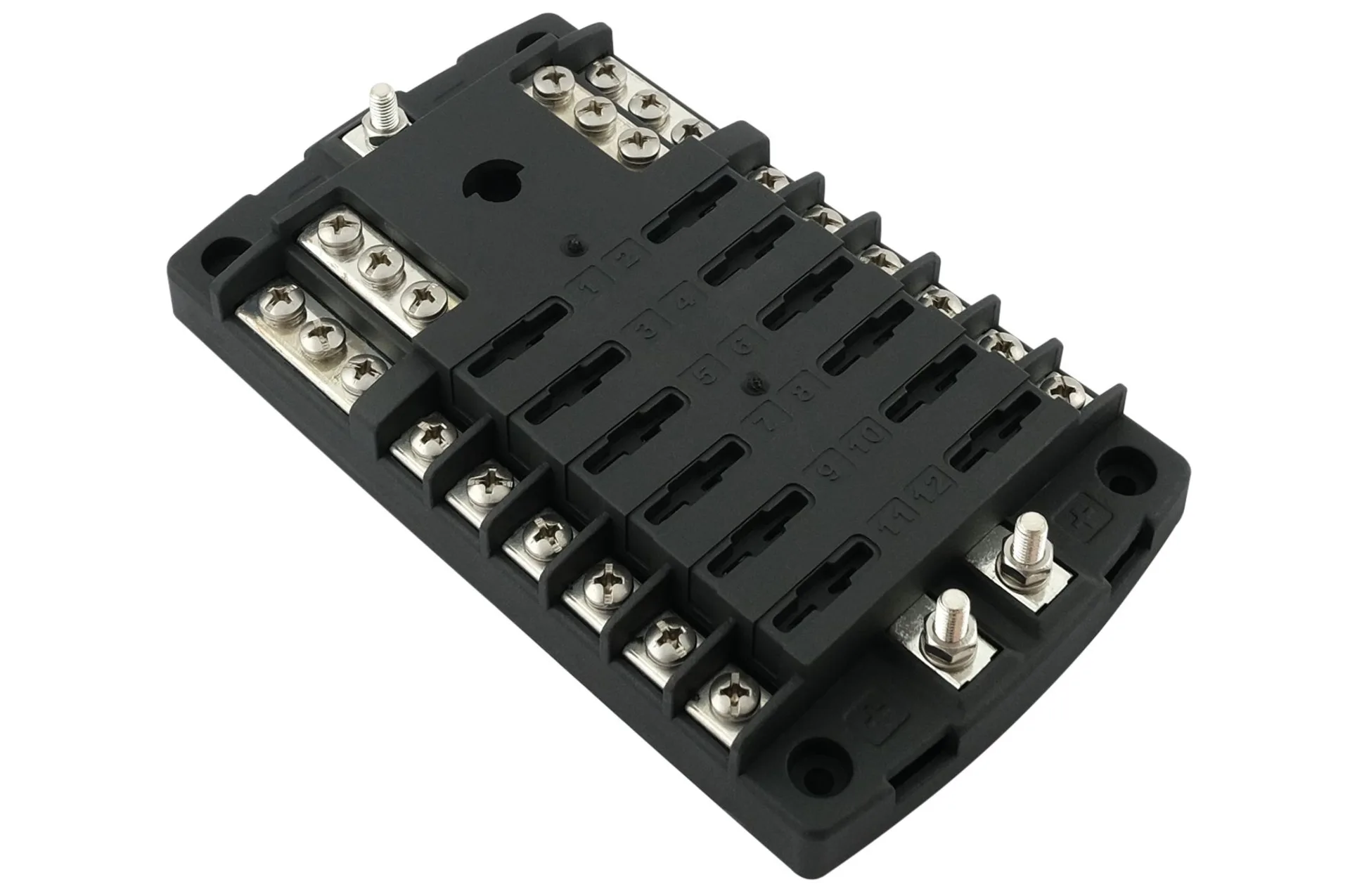 - pour 12 fusibles ATO (sans fusibles) - 2 x connexion positive M5 - 1 x connexion négative M5 - 12 connexions négatives M4