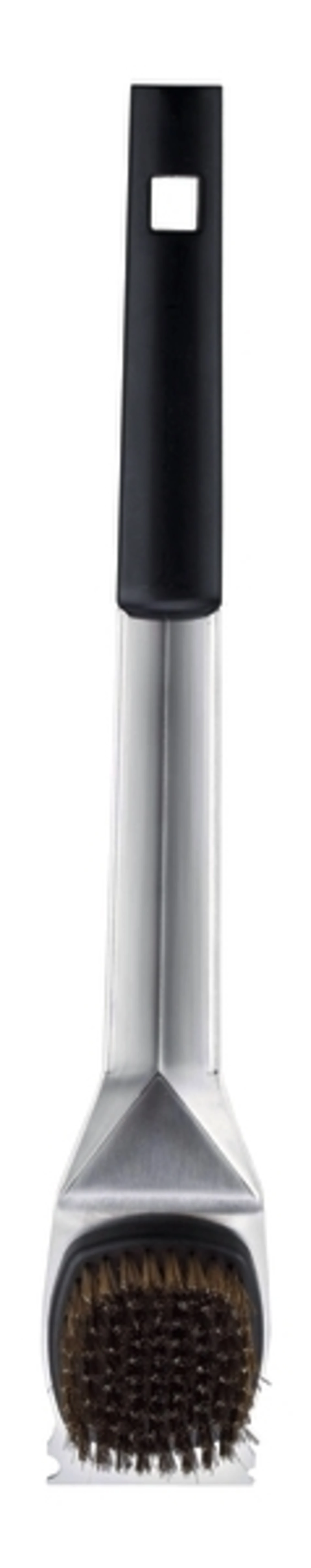 Brosse à barbecue en acier inoxydable avec ouvre-bouteille intégré.