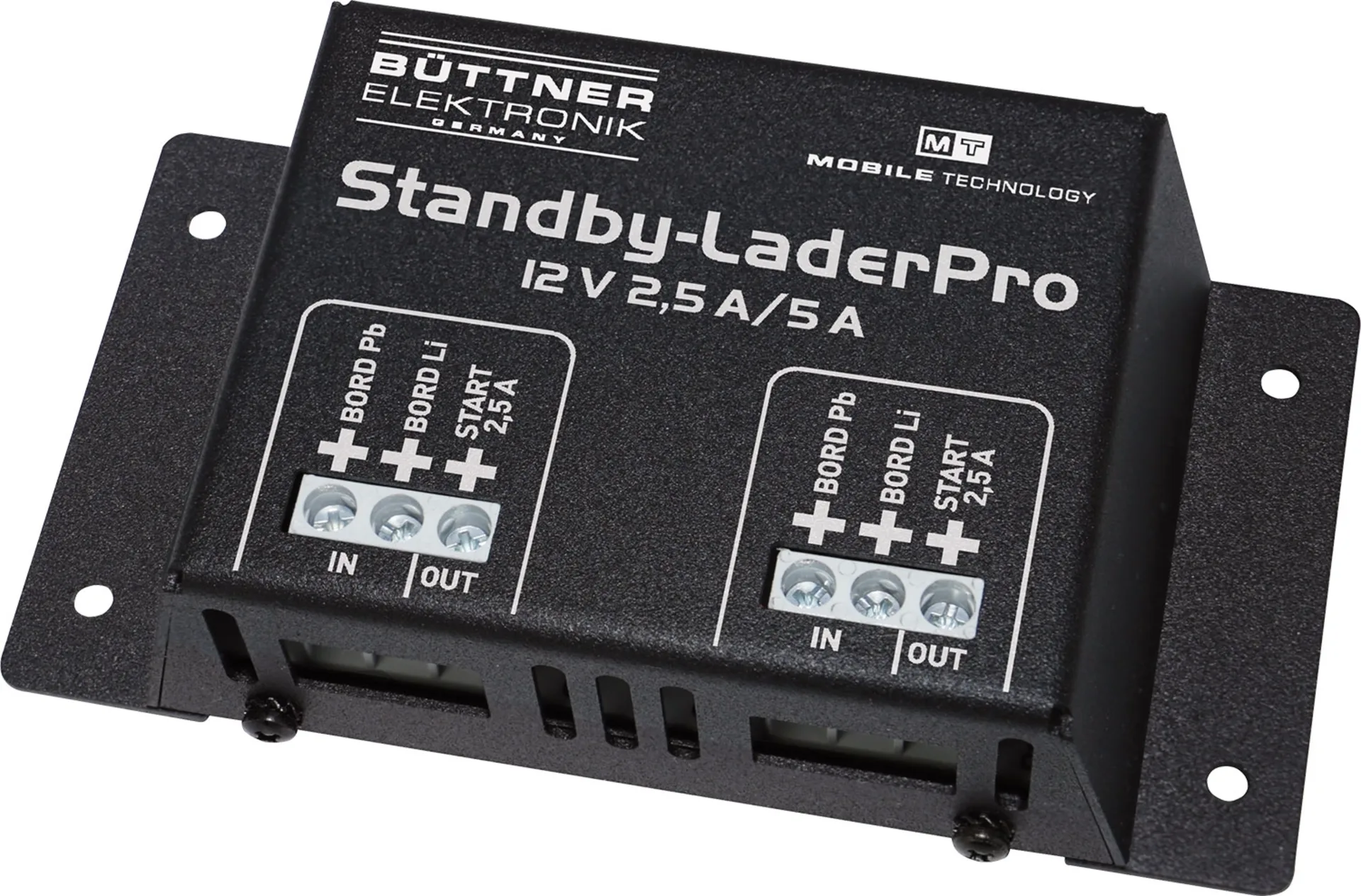 Pour que ces consommateurs supplémentaires soient également alimentés par la batterie de bord, nous avons développé les chargeurs de standby. Les appareils surveillent les tensions des deux systèmes de batterie et libèrent du courant en fonction des besoins. Avec ses 5 A, le chargeur de veillePro peut également compenser les consommateurs de veille. Si tu utilises des batteries au lithium (LiFePO4) comme batterie de bord, tu dois toujours utiliser le chargeur de secoursPro