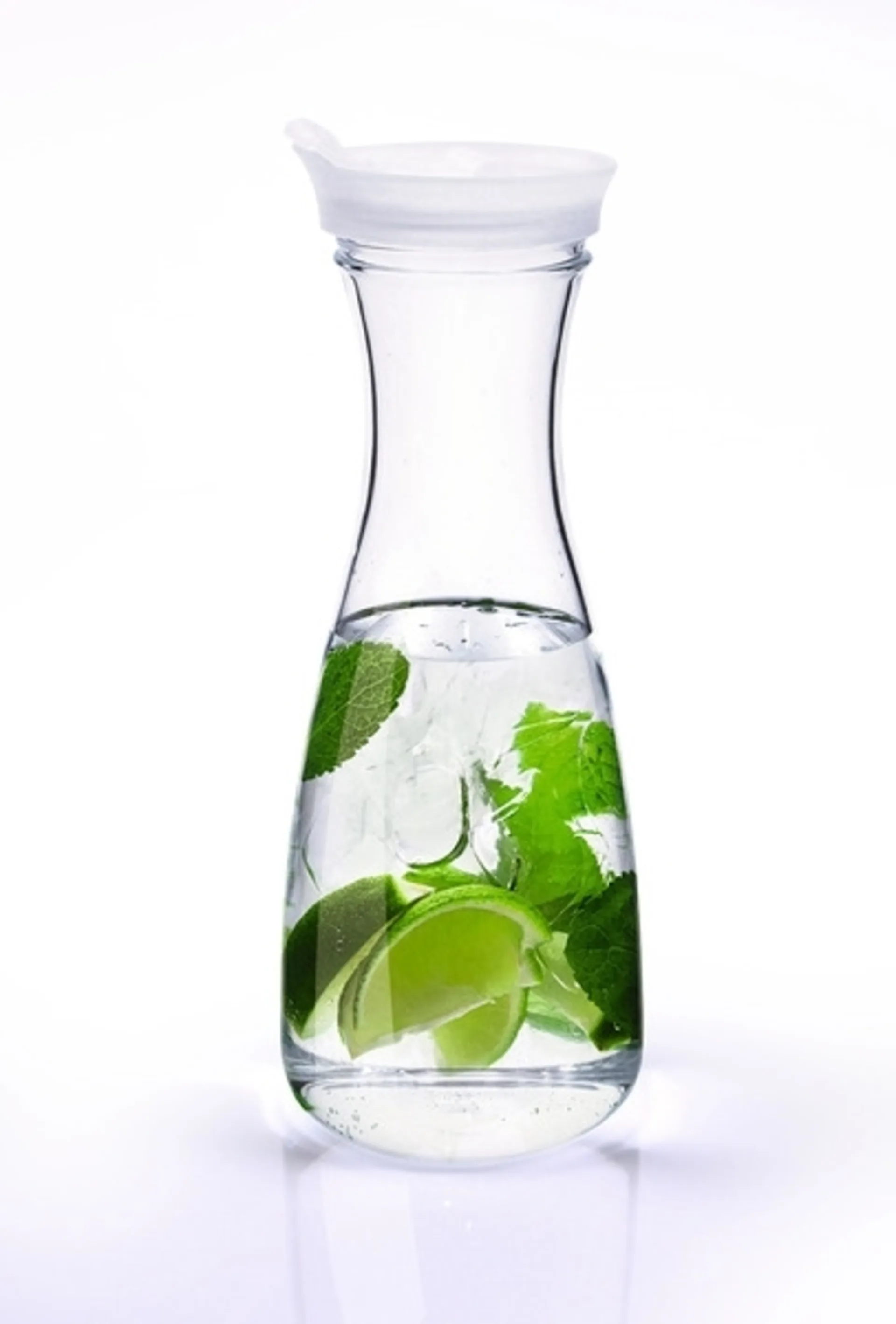 Carafe en acrylique polyvalente avec couvercle à visser. Couvercle dévissable et avec trou de versement (Ø environ 3cm).