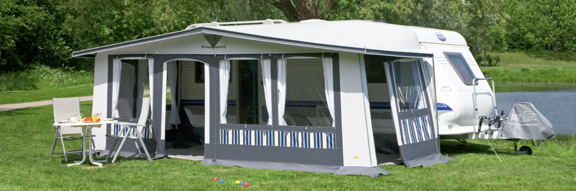 Nos modèles de la classe LUXUS sont équipés de barres en acier renforcées, de barres de tension d'avant-toit et d'entretoises. Des rideaux dans la paroi latérale assurent le confort.