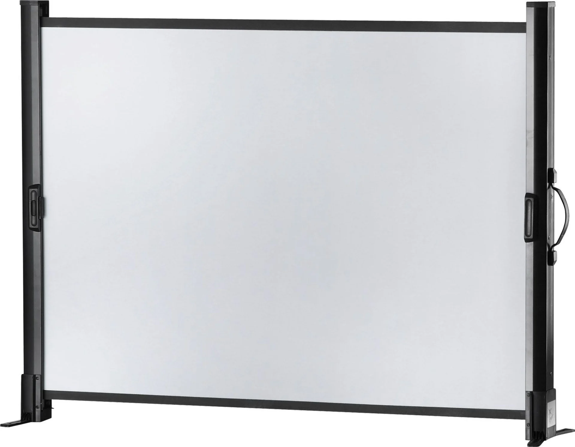 L'écran se monte en quelques secondes et est prêt à l'emploi grâce à son système pratique et bien pensé. La toile de l'écran se compose d'une base de noyau en tissu et possède un revêtement blanc mat. Le facteur de gain de 1,2 permet une projection en déplacement, même dans des conditions de lumière résiduelle. Grâce à son faible poids, à son tissu de transport intégré et à ses pieds pliables, le transport est extrêmement simple et sans stress.