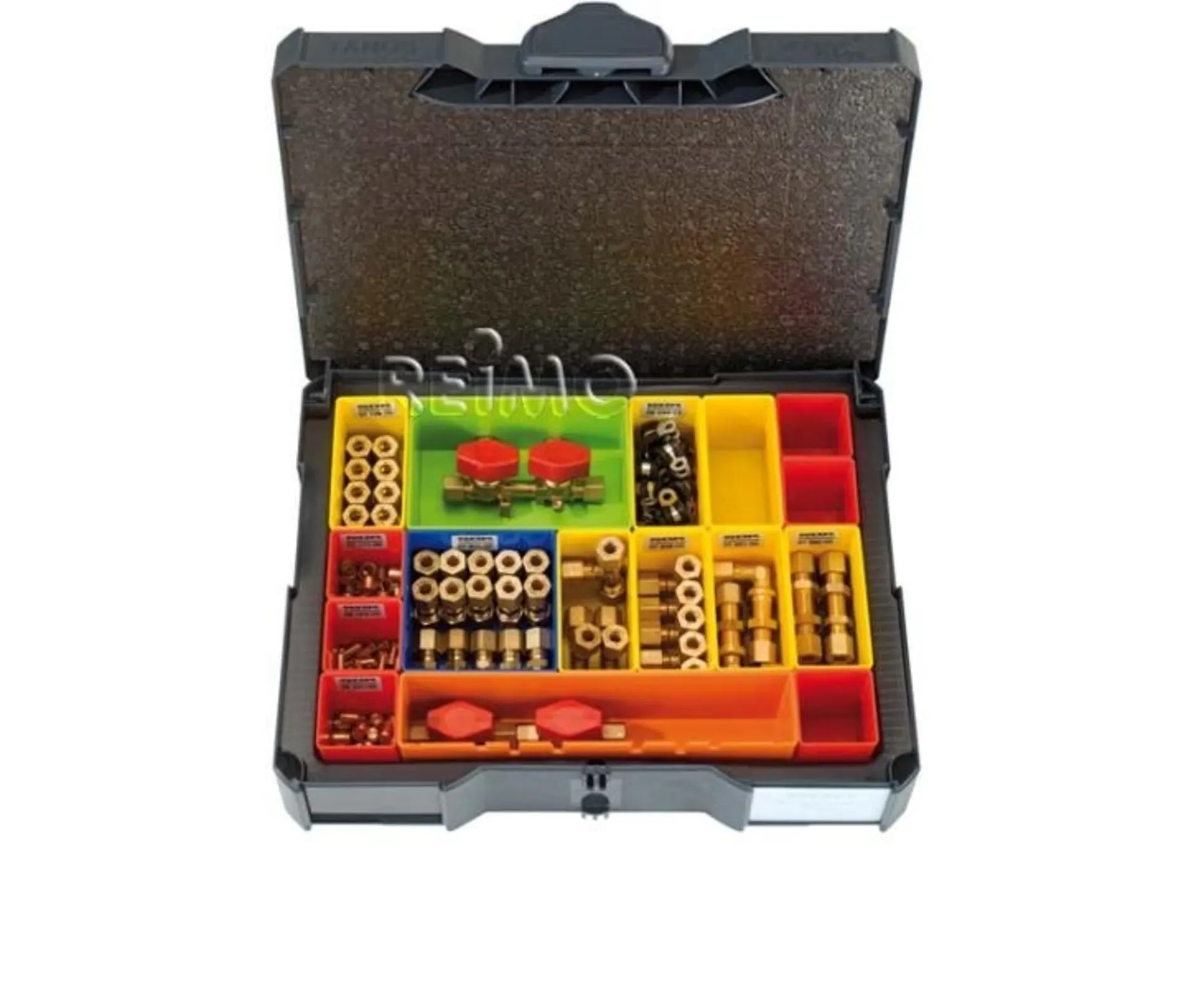 Tous les composants nécessaires au montage ou à l'entretien des bateaux de plaisance sont clairement classés dans une mallette système. Coffret système en plastique ABS de haute qualité. Dimensions H/L/P : environ 105 x 395 x 295 mm.