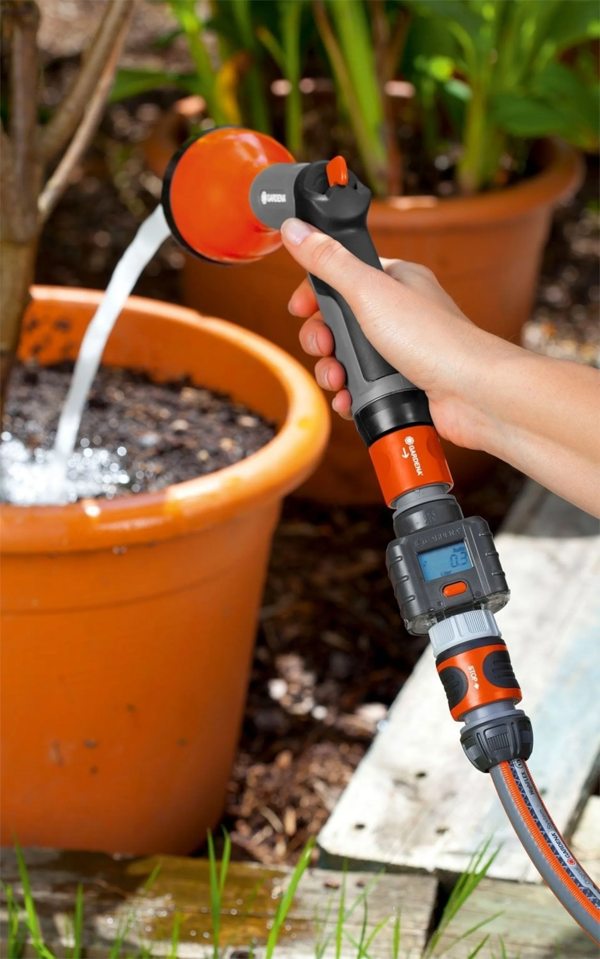 Le compteur d'eau innovant de Gardena garantit un arrosage ciblé avec mesure et bon sens. En un coup d'œil, tu peux voir la consommation d'eau par jour et le débit actuel en litres par minute. Cela signifie que la quantité d'eau utilisée est toujours lisible sur le grand écran et donc sous les yeux. Jusqu'à présent, chacun arrosait selon son sentiment personnel et sa forme du jour. Le compteur d'eau te permet de savoir ce qui se passe. Désormais, tu arroses de manière ciblée, en fonction de tes besoins et de manière systématique. C'est bon pour le jardin, pour l'environnement et pour le porte-monnaie. Le compteur d'eau fonctionne avec des piles (pile bouton incluse) et est immédiatement prêt à être connecté au robinet, à la pomme de douche, à l'arroseur ou à la pompe. Le compteur d'eau robuste et résistant aux chocs se clique simplement sur le robinet ou le tuyau et fournit immédiatement des données importantes grâce à une mesure active. Grâce à ce compteur innovant, l'attention portée à la consommation d'eau augmente.