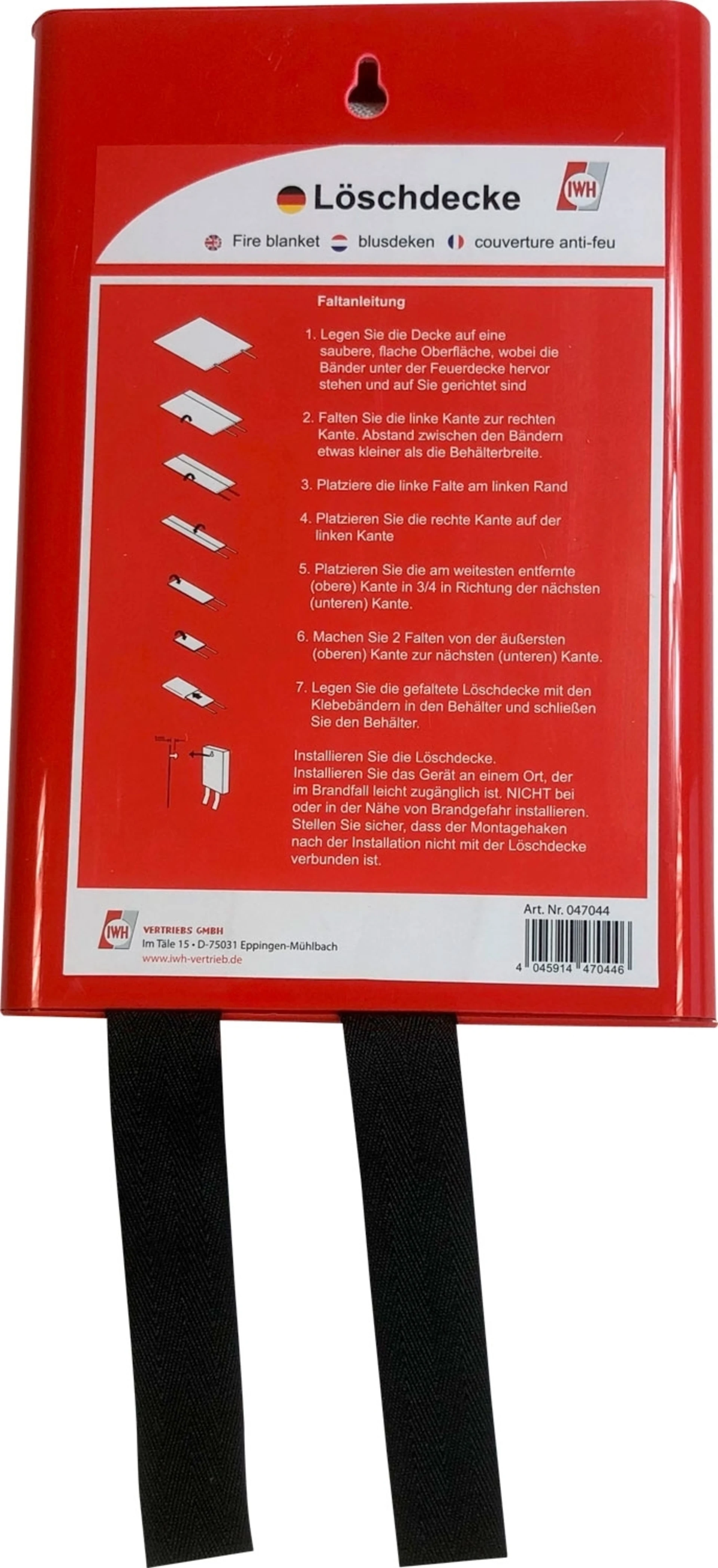 Pour étouffer et éteindre rapidement les foyers d'incendie, par ex. voiture, cuisine, barbecue, ect. Taille : 1m². Dans une boîte rigide pratique pour le montage mural et des languettes cousues pour un retrait rapide. Testé selon la norme EN 1869 : 2019.