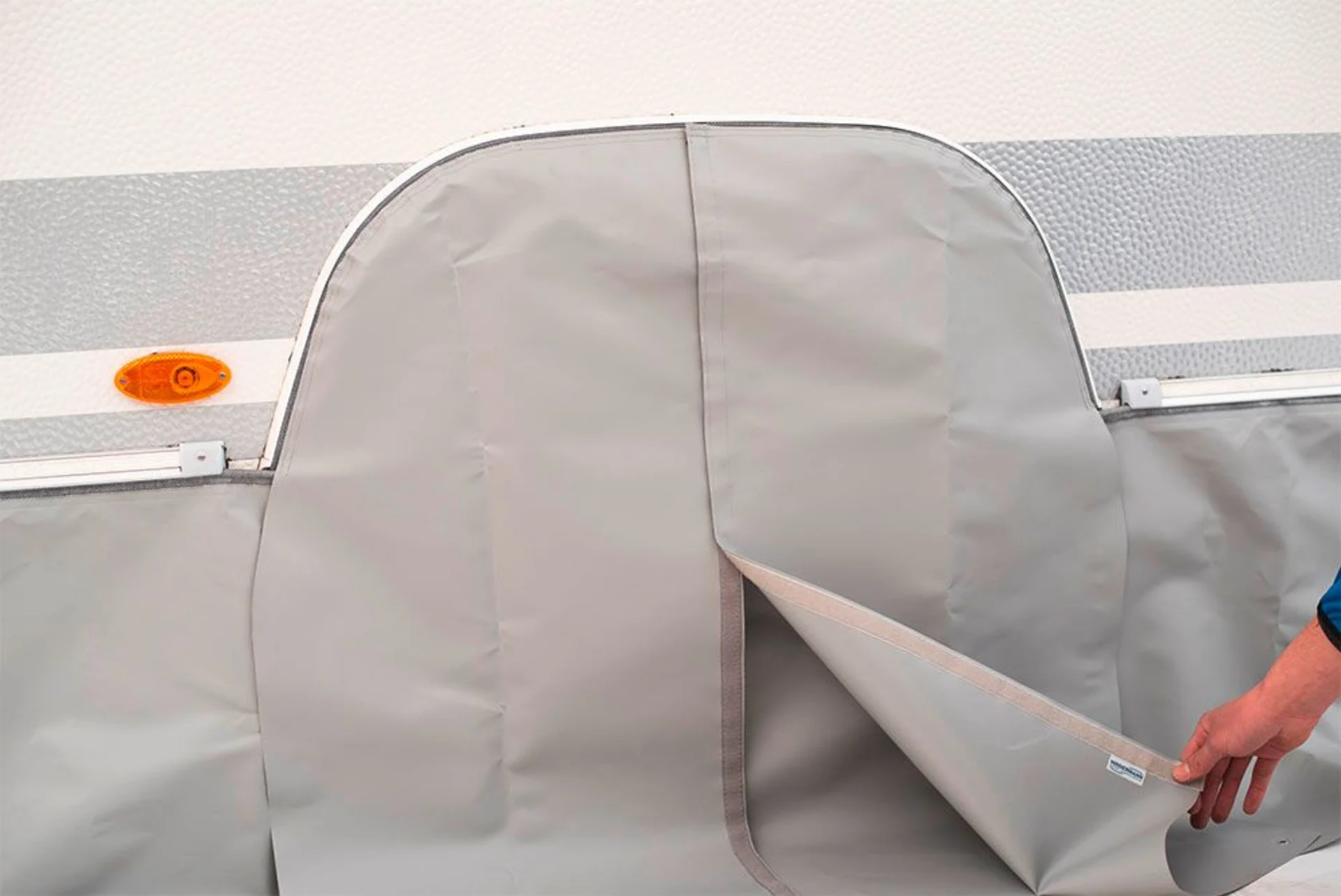 Die Hindermann Passformabdeckung ist eine vollflächige Abdeckung des Radkastens. Sie schützt vor Zugluft und ermöglicht eine durchgängig einheitliche Optik mit den Hindermann Bodenschürzen. Darüber hinaus ist sie kompatibel mit der Spezial Bodenschürze mit abgesenkten Türeinstieg, Caravan Keller und den Hindermann Organizerschürzen.