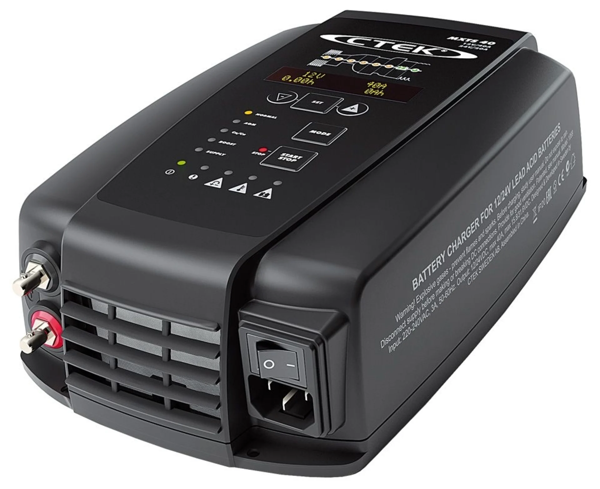 8 niveaux, entièrement automatique, pour batteries humides, MF, AGM, calcium/calcium et GEL, avec fonction Supply et Recond (Boost), longueur de câble 2.5m, 12V : 20-1200Ah, 24V : 10-600Ah