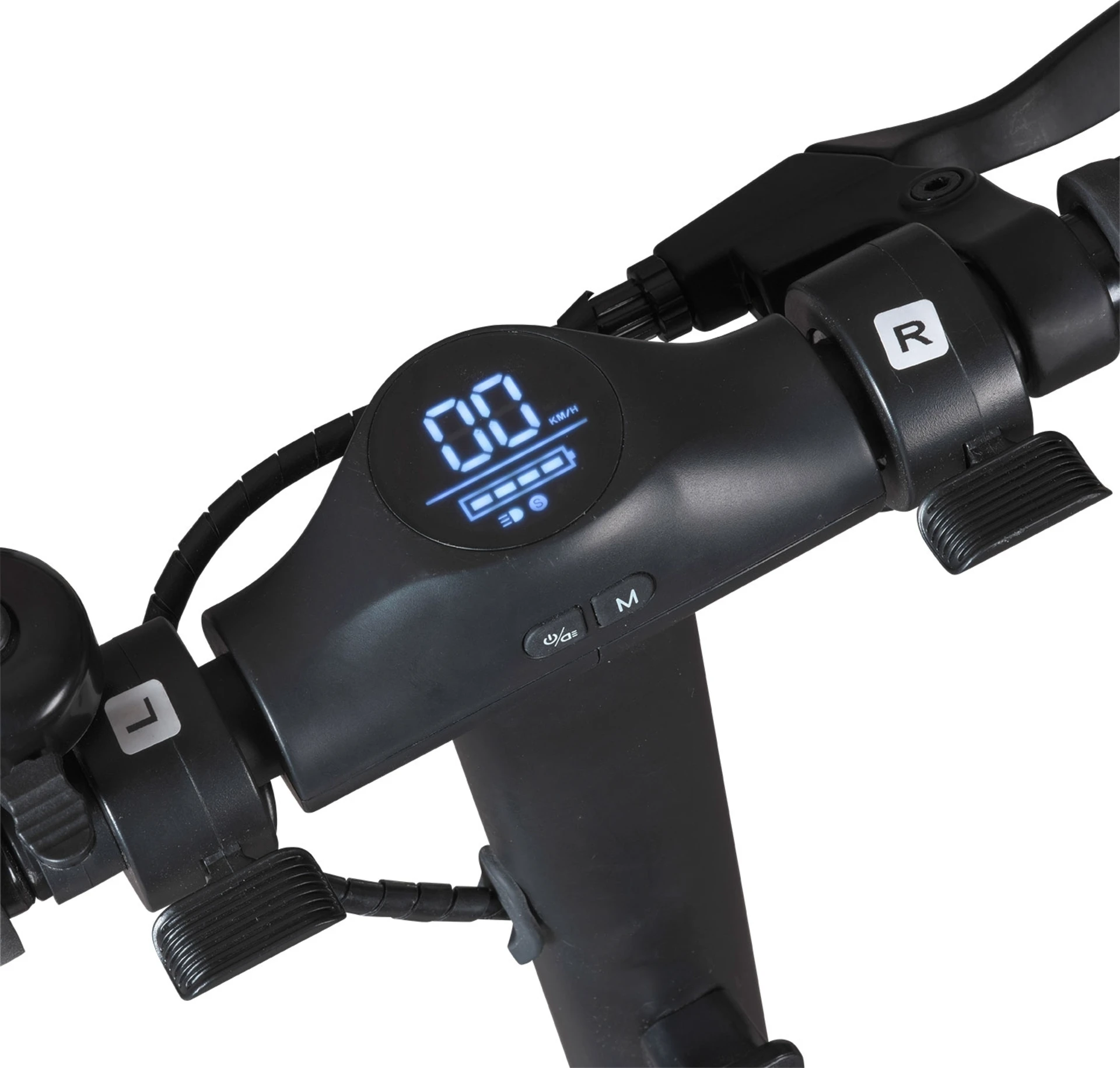 - Anzeige/Display Geschwindigkeit, Ladestand, Fahrmodi, Licht an