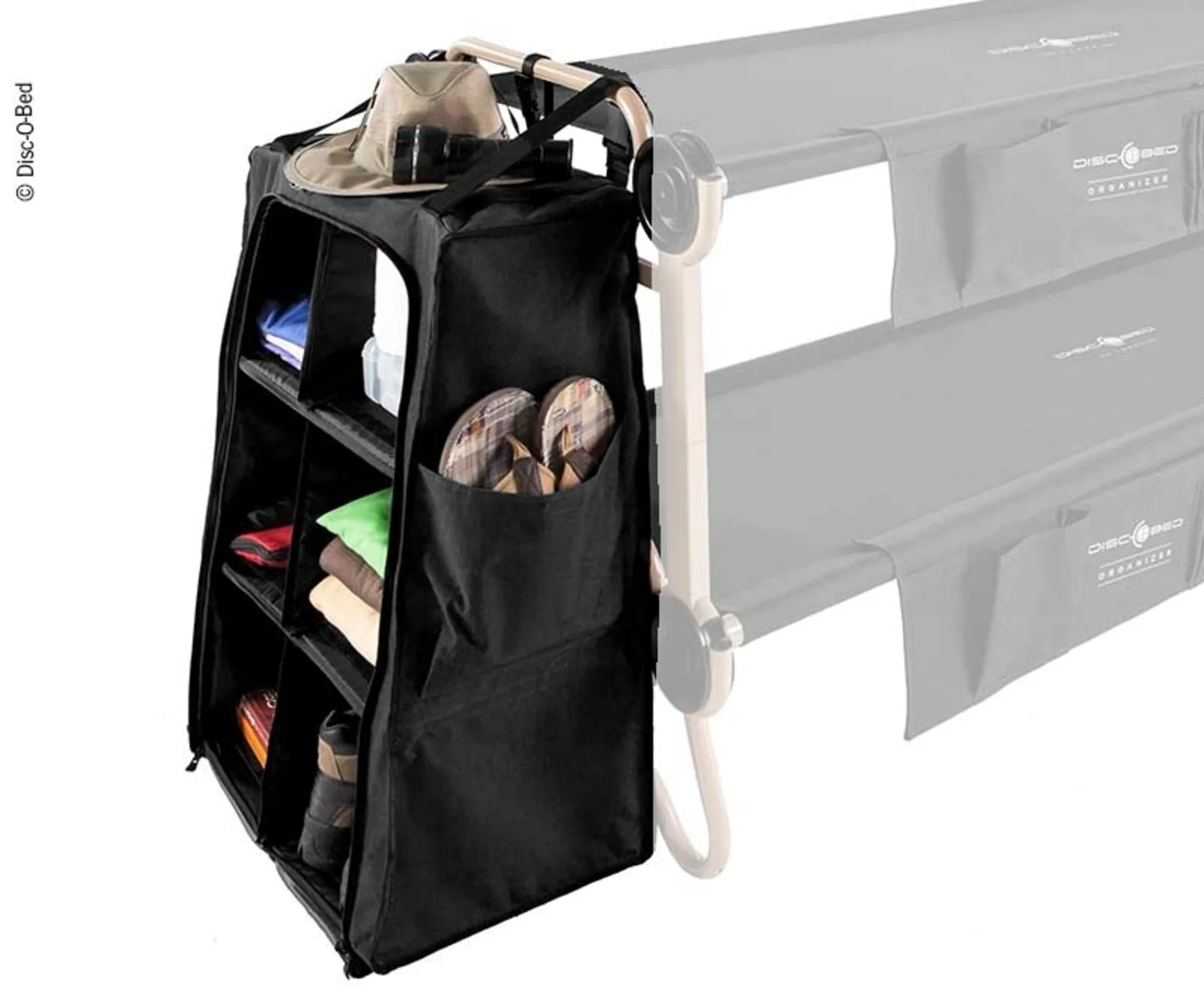 Cabinet / garde-robe noir adapté au lit superposé Disc-O-Bed L / XL, l'armoire parfaite pour les déplacements avec des possibilités de rangement variées et généreuses.