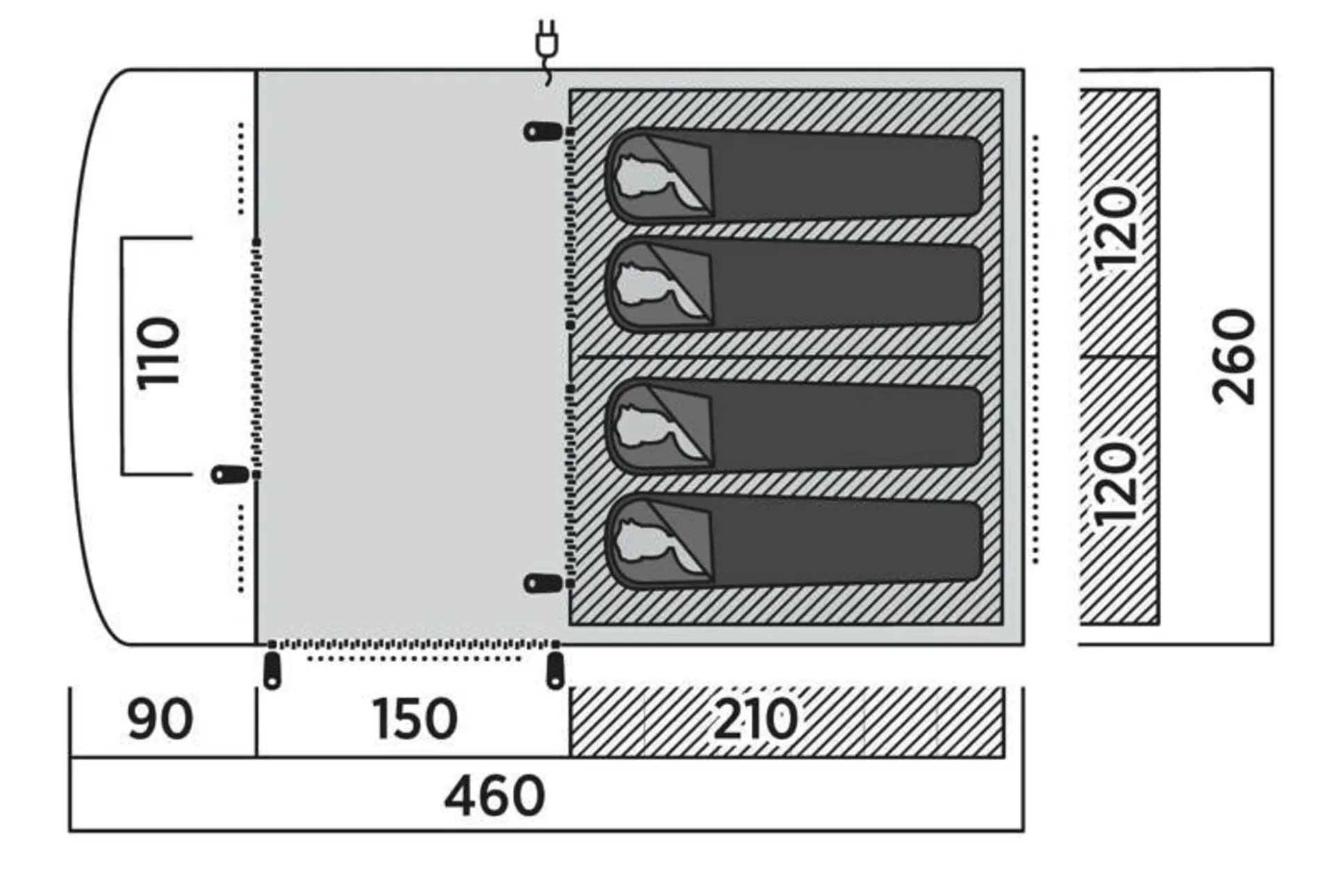 Das Skarvan 4 Zelt überzeugt durch seine vielseitige Belüftung: Sowohl die Vorder- als auch die Seitentüren verfügen über Moskitonetze, und die hintere Belüftung ist einstellbar, um die Luftzirkulation je nach Bedarf zu optimieren. Der praktische Seitenzugang ermöglicht einen bequemen Ein- und Ausstieg, während der eingenähte Zeltboden und die abnehmbaren Schlafkabinen für zusätzliche Flexibilität und Komfort sorgen.