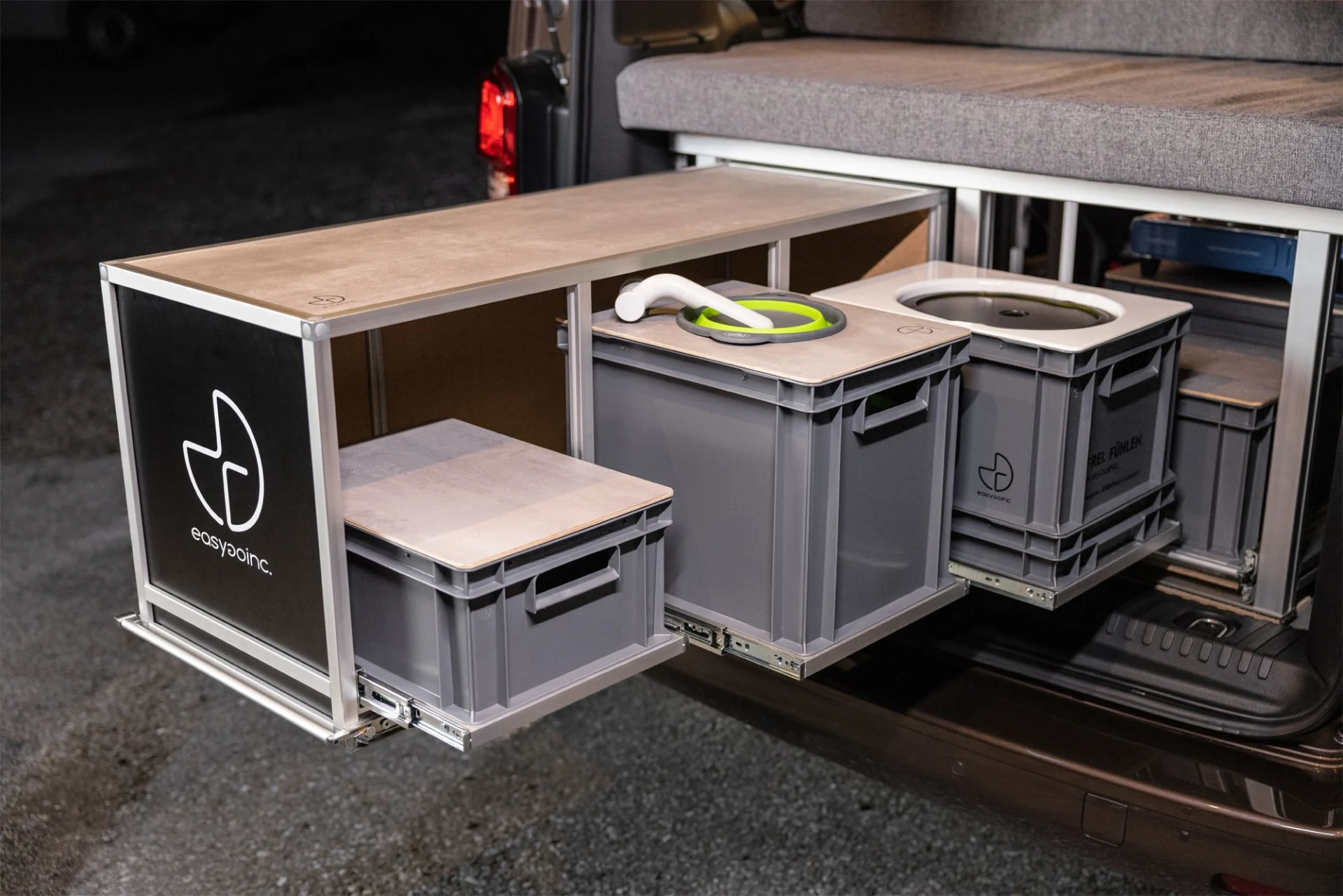 Das vanlife.module SPORT ist eine vielseitige Campingbox für Vans, die einen einfachen Umbau in einen Camper ermöglicht. Neben dem robusten Bettgestell und dem flexiblen Lattenrost kannst du zwischen verschiedenen Ausstattungen wie einem Küchenmodul und herausziehbaren Auszügen wählen.