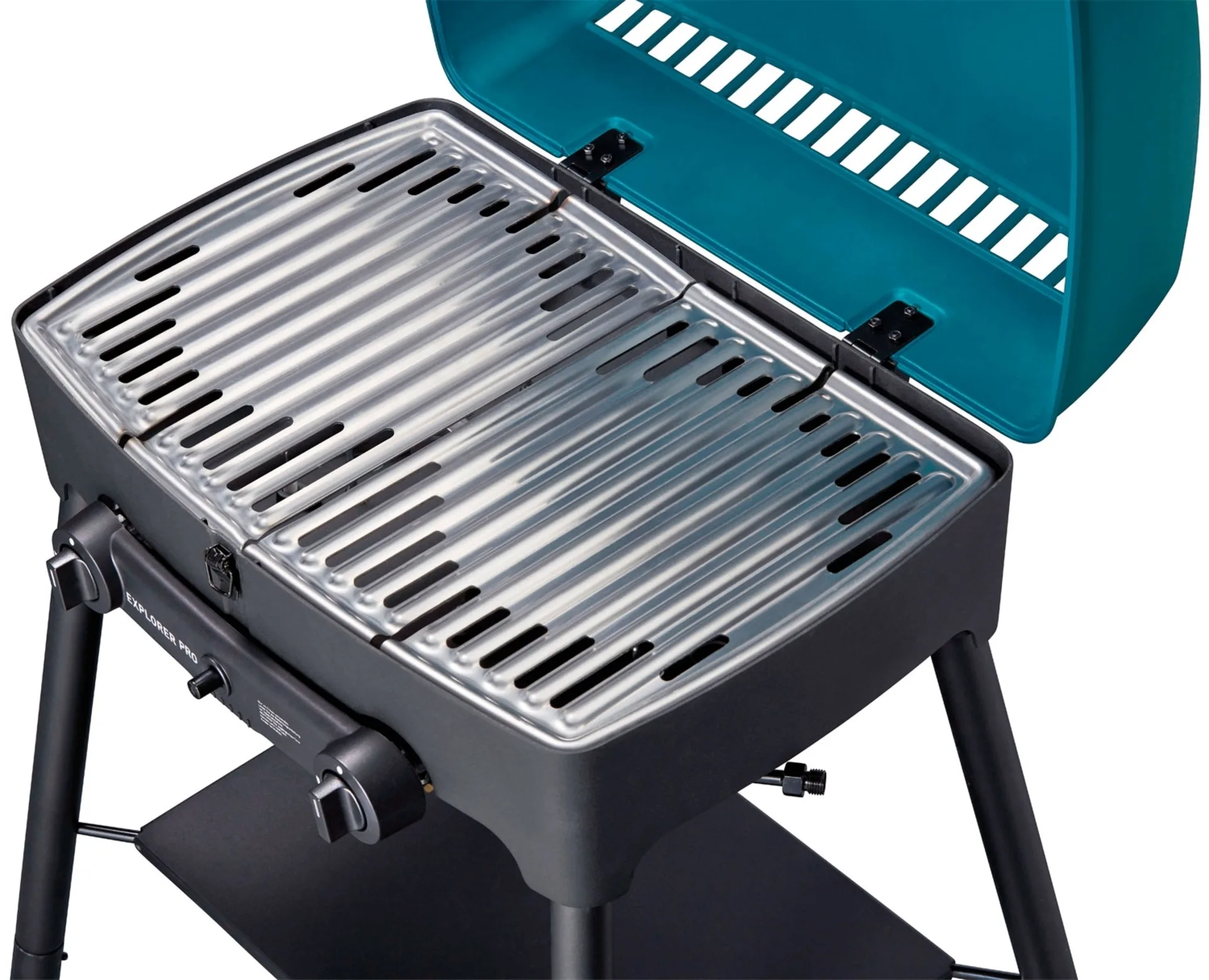 La hotte de cuisson robuste et volumineuse en fonte d'aluminium, ainsi que la surface de rangement utile qui confère en plus beaucoup de stabilité au barbecue, distinguent la "version Pro" de l'"Explorer Next" normal !