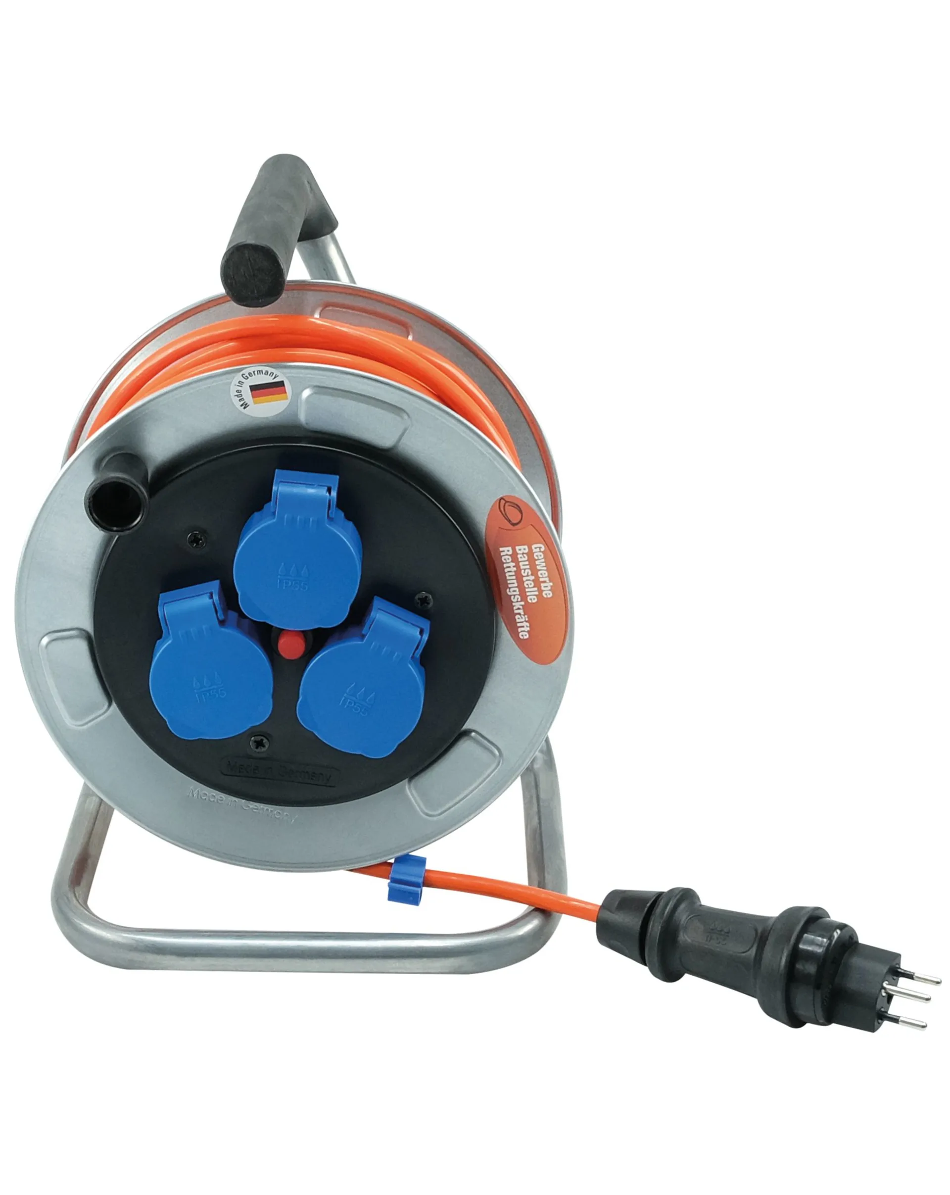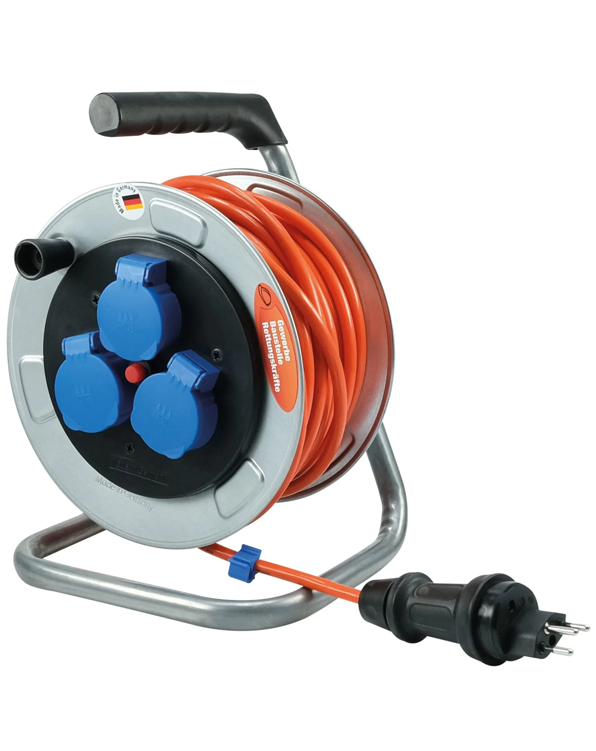 - enrouleur de câble 230 VAC en métal - longueur de câble 25 m CH-N1BQ-F3G1.5 - PUR-PUR avec fiche T12 - 3 prises T13 avec couvercle rabattable - disjoncteur thermique - frein conique - max 10 A - IP55