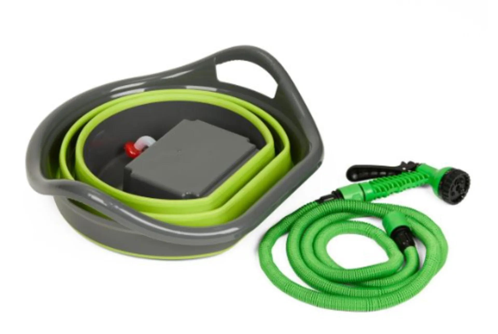 Faltbarer Wassereimer (15 l) mit Deckel. Kann dank der wiederaufladbaren, verbauten Batterie überall, wie z. B. am Strand, Campingplatz oder im Garten, stromunabhängig für verschiedene Reinigungszwecke eingesetzt werden.