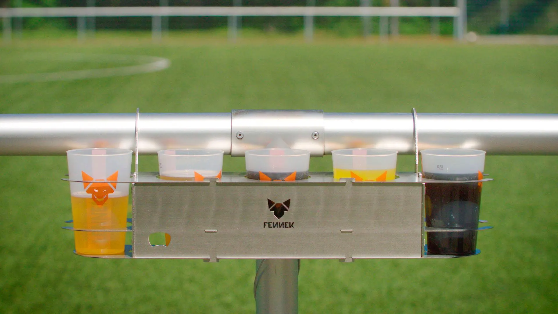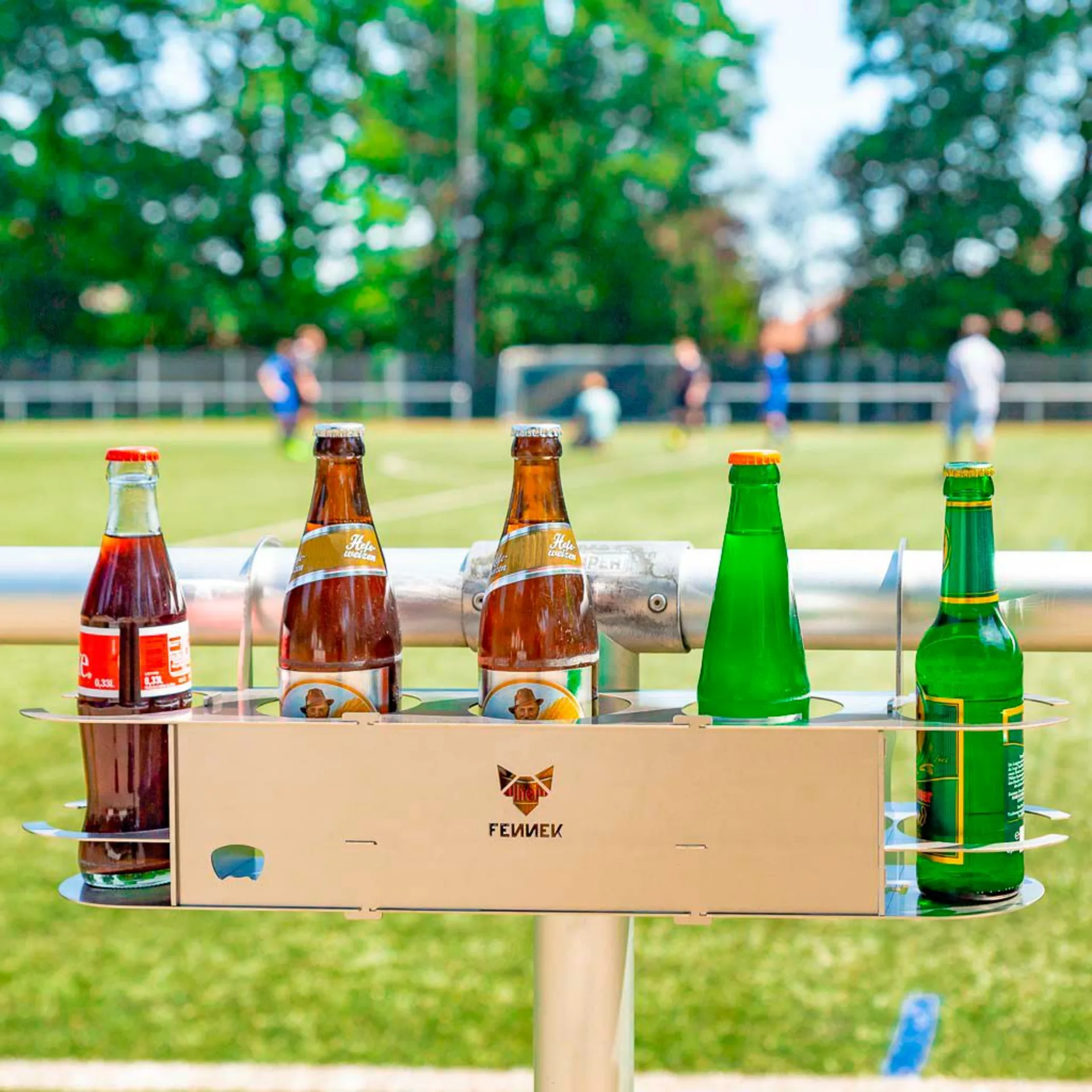 Dieser Getränkehalter ist perfekt für den Sportplatz! Ob Fußball oder Tennis – ganz egal, weil er überall passt . Der Getränkehalter ist perfekt für spannende Matches auf dem Spielfeld, denn er hält was er verspricht. Er hat Platz für insgesamt 3 oder 5 Getränke und hält diese sicher am Spielrand. Jetzt hast du die Hände frei zum Jubeln und Klatschen.