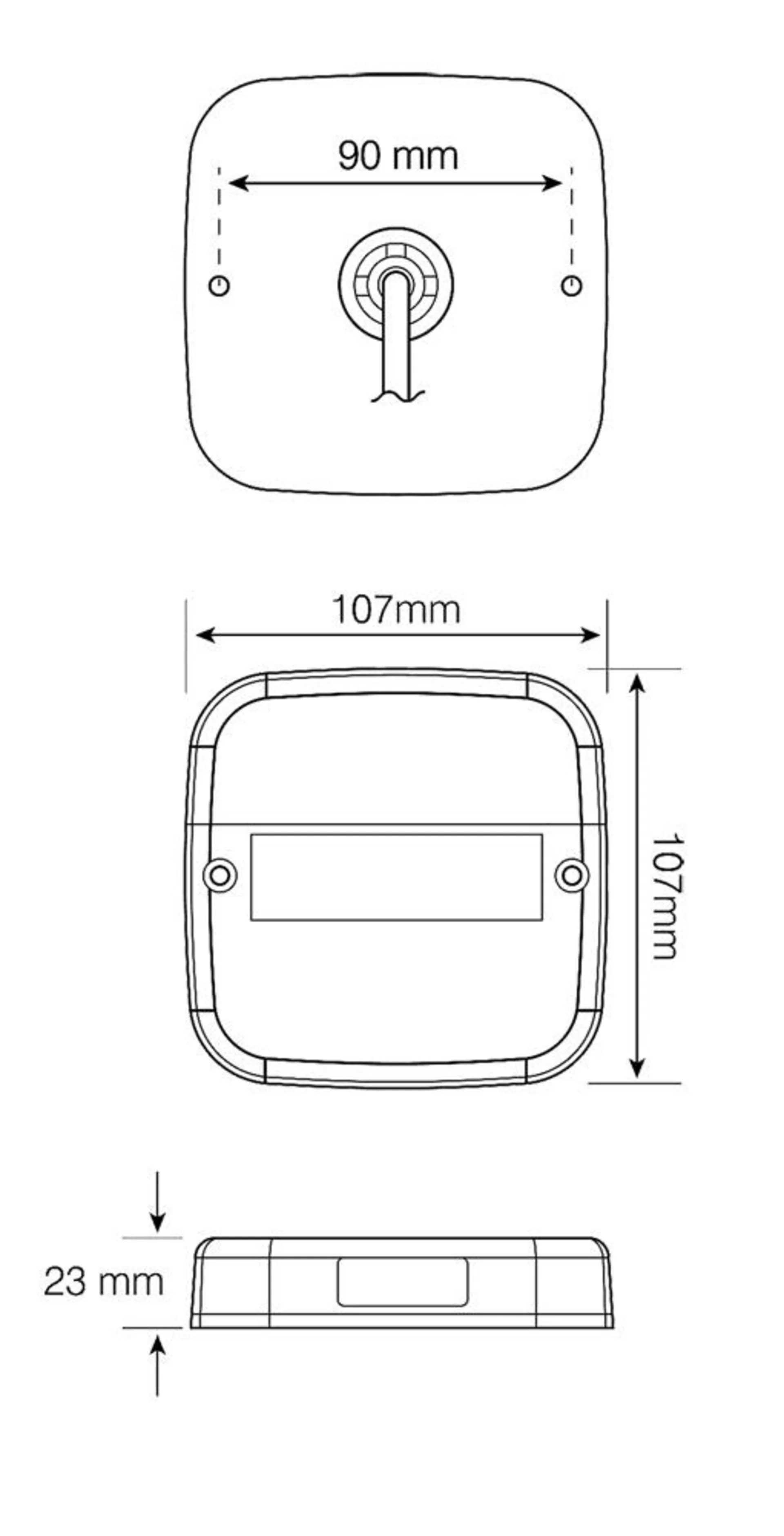 Numéro EE9-6877Connexion du verre de remplacement des ampoulescâble de connexion prémonté 500 mmDimensions107 x 107 x 23 mm, distance entre les trous : 90 mm