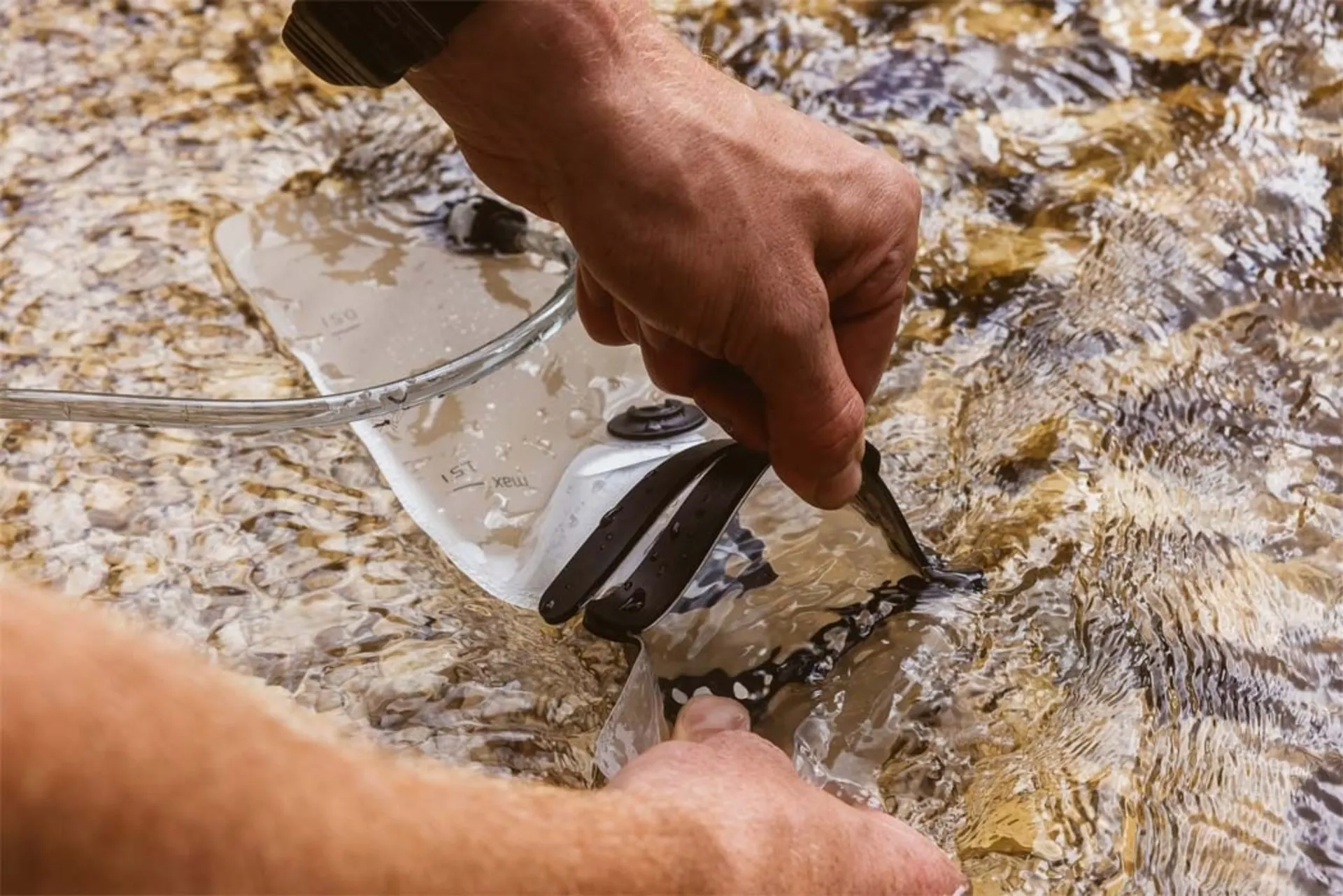 Escalade, vélo ou randonnée - une bonne hydratation est indispensable, mais tu ne veux pas t'attarder sur les préparatifs ? La poche d'hydratation Hermetic est très facile à remplir et se ferme immédiatement et automatiquement. Grâce à nos technologies de fermeture brevetées, une manipulation simple est garantie pour que tu puisses commencer ton sport rapidement et de manière fiable. La poche d'hydratation dispose de trois rangées d'aimants à large ouverture qui se scellent automatiquement et hermétiquement et offrent une sécurité maximale contre les fuites. La fermeture supplémentaire par encliquetage sur le rabat du sac peut être utilisée d'une seule main et empêche l'ouverture involontaire de la poche à eau dans le sac à dos pendant les activités.