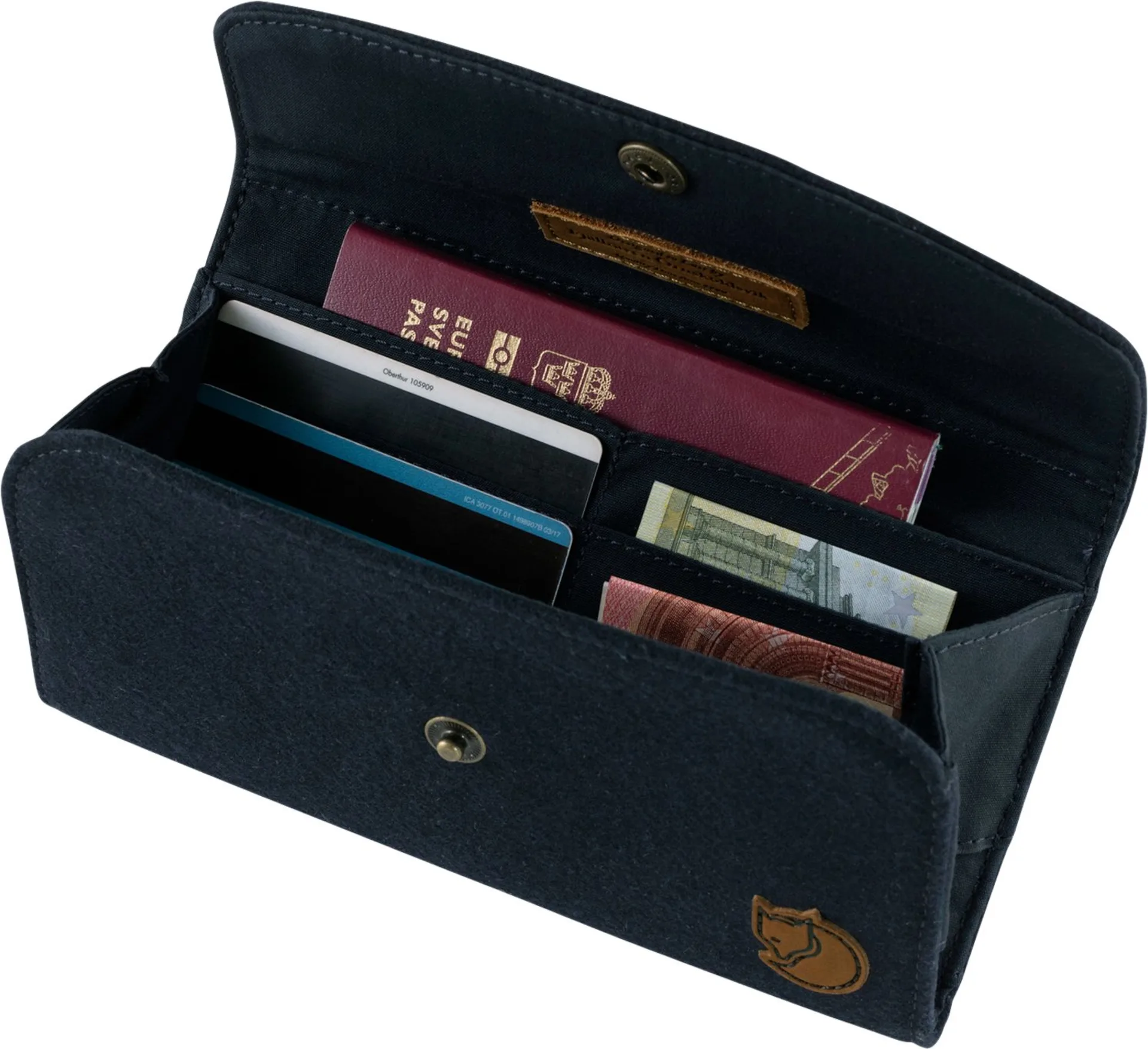 - Platz für mehrere Karten, ungefaltete Geldscheine, Reisepass, Handy usw.