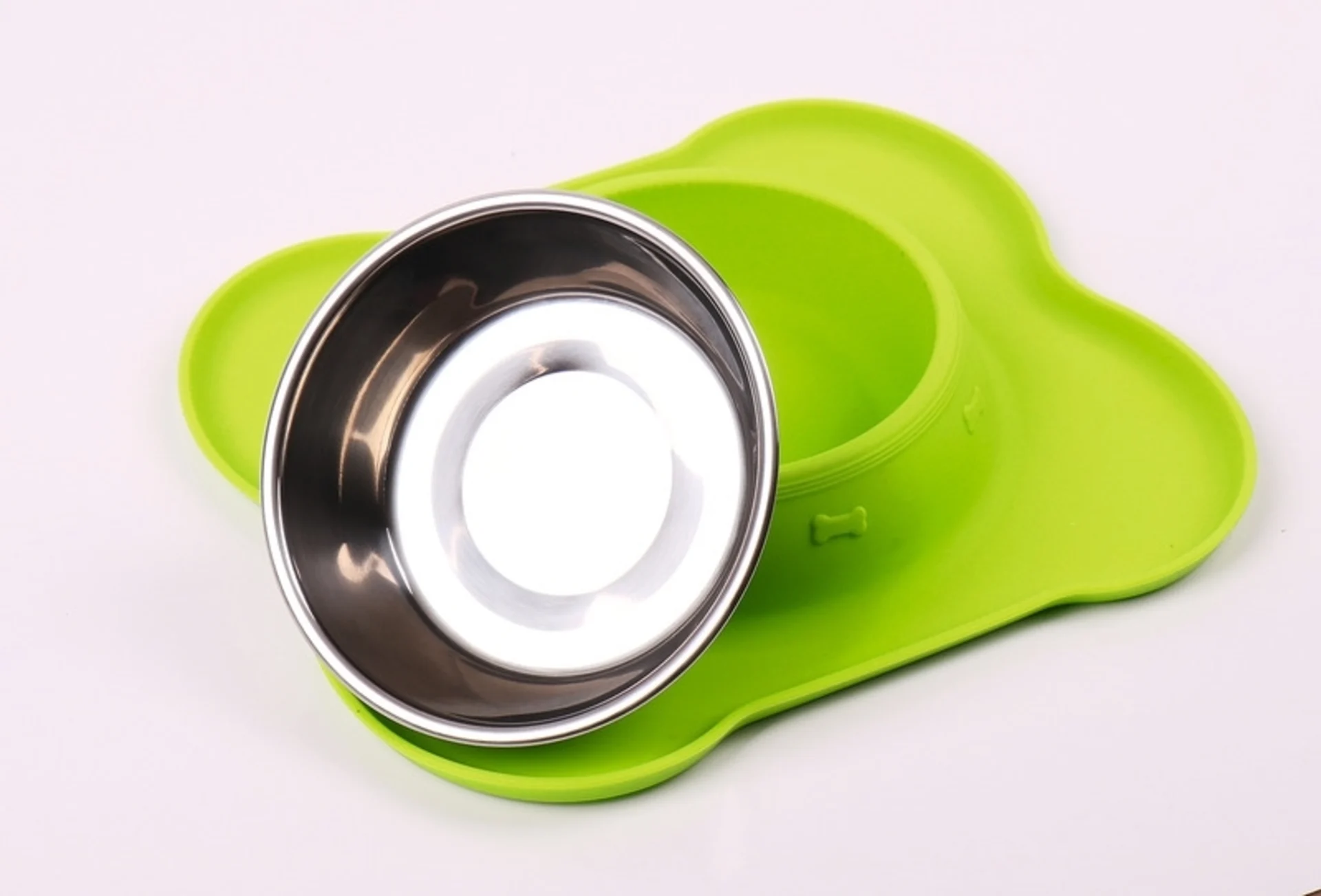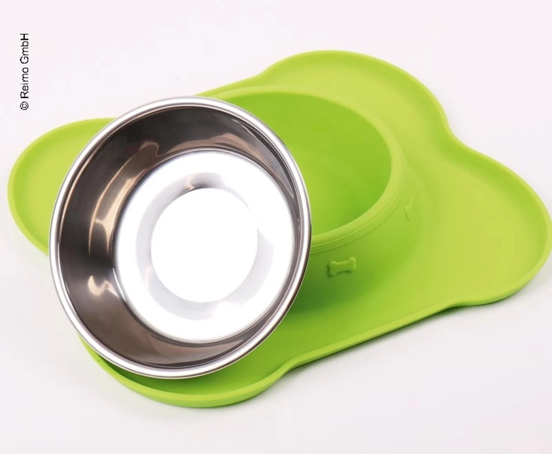 Contenu : 1 bol en acier inoxydable avec tapis en silicone