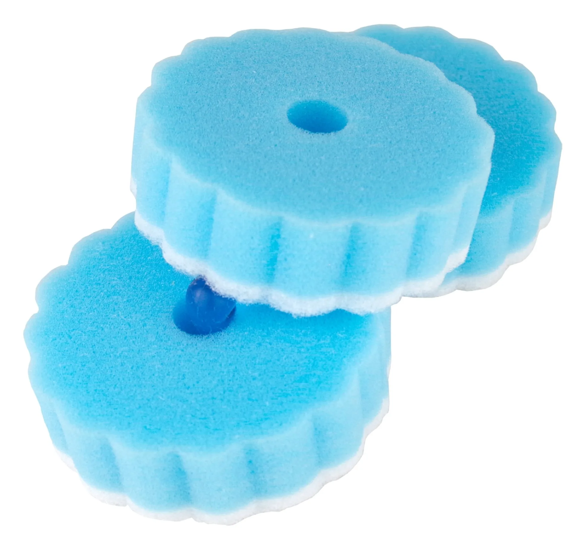 set de rinçage de 4 pièces composé de 3 éponges et d'un support avec ventouse. Pour fixer l'éponge dans l'évier à l'aide du support à ventouse, évite les taches d'eau sur le bord de l'évier. En étant suspendue librement, l'éponge sèche mieux de tous les côtés.