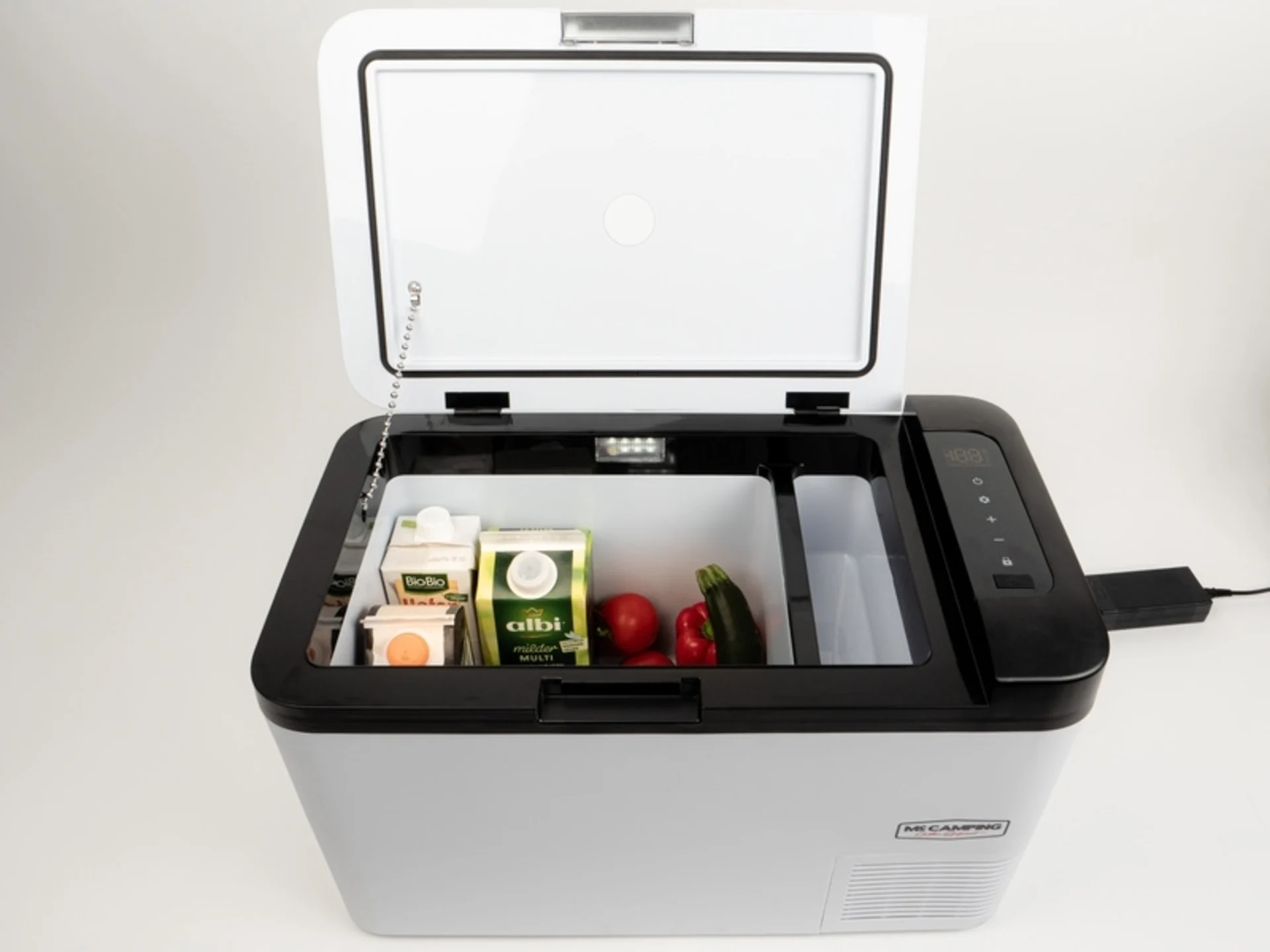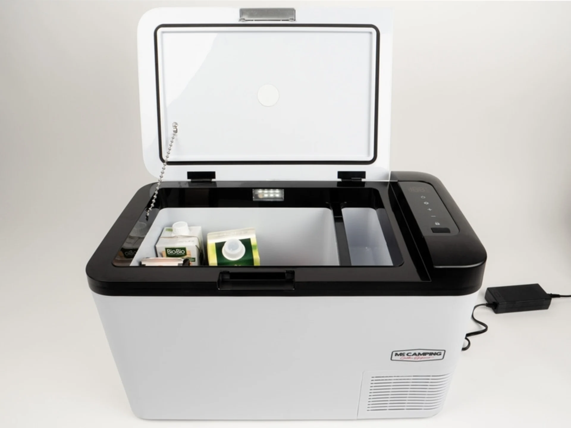 Cette glacière 12V/24V d'un volume de 26 litres combine des dimensions compactes et un design moderne. Le compresseur de qualité permet une plage de réfrigération de +20°C à -20°C. Le réglage de la température se fait via un écran tactile LCD. Autres caractéristiques : Éclairage intérieur LED, poignées de transport encastrées, port USB, mode MAX & ECO, protection de batterie intégrée. La hauteur de la glacière permet de la placer sous l'extrémité avant des banquettes/dortoirs Reimo V3000 et V3100 repliés en lit.