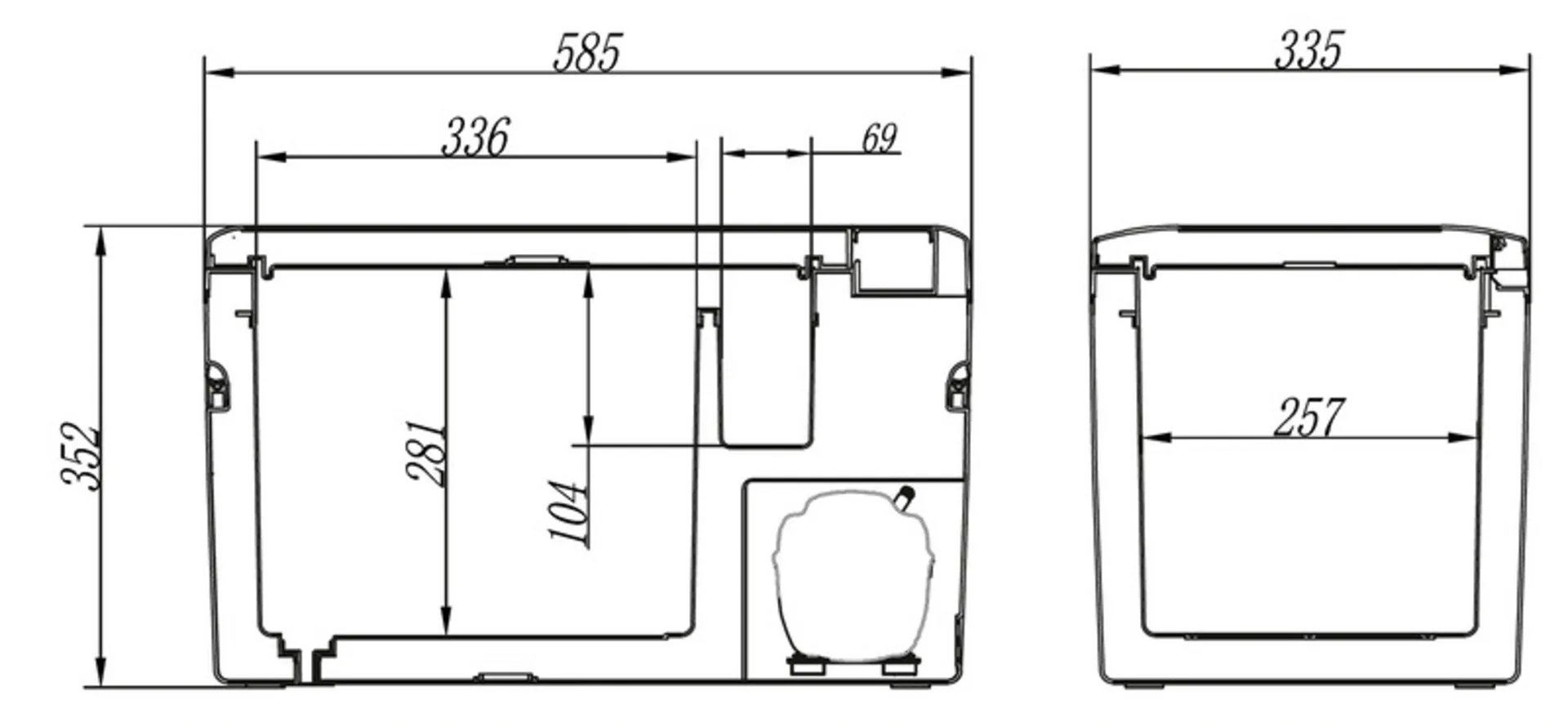 - Dimensions (LxlxH) : environ 585x335x352 mm