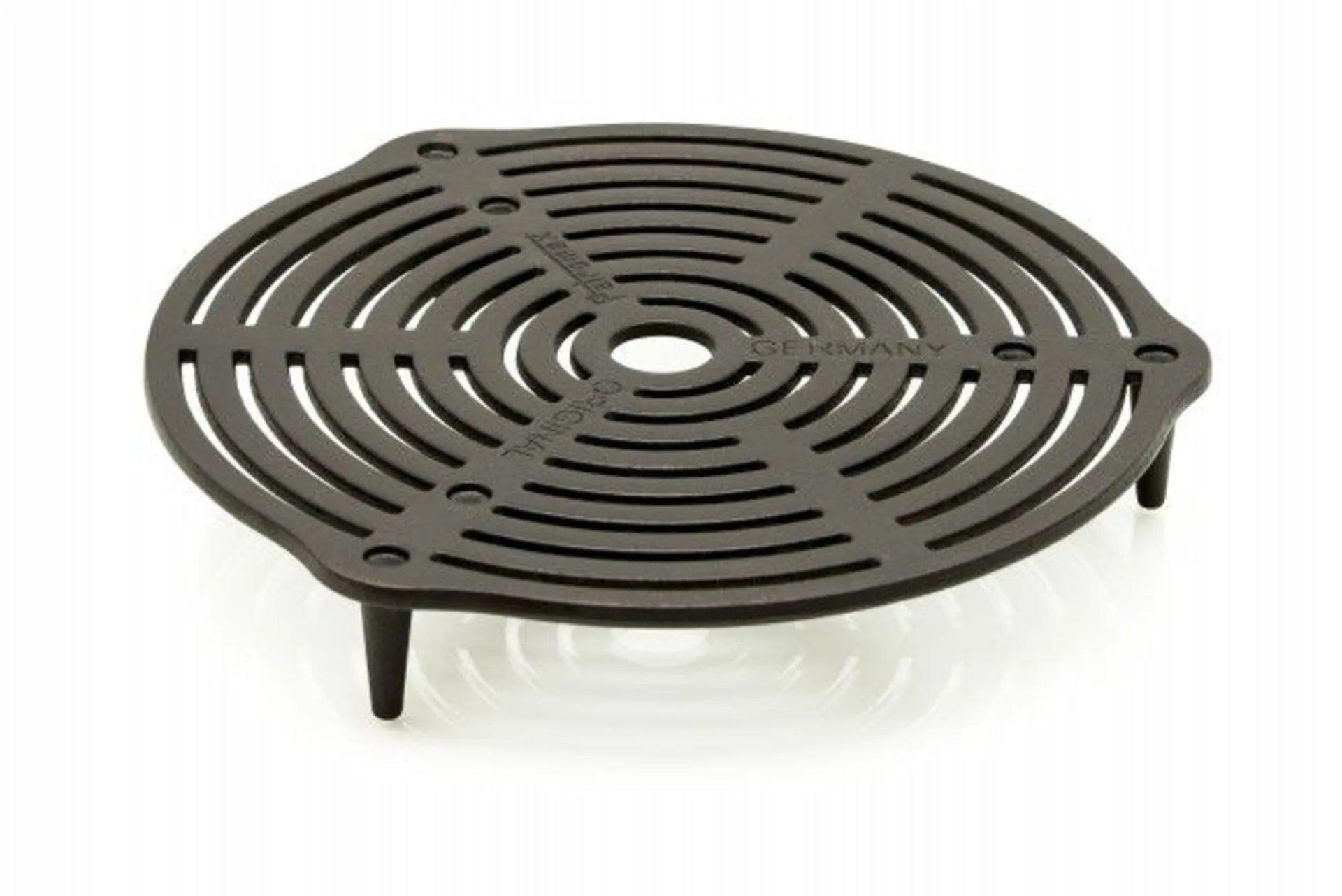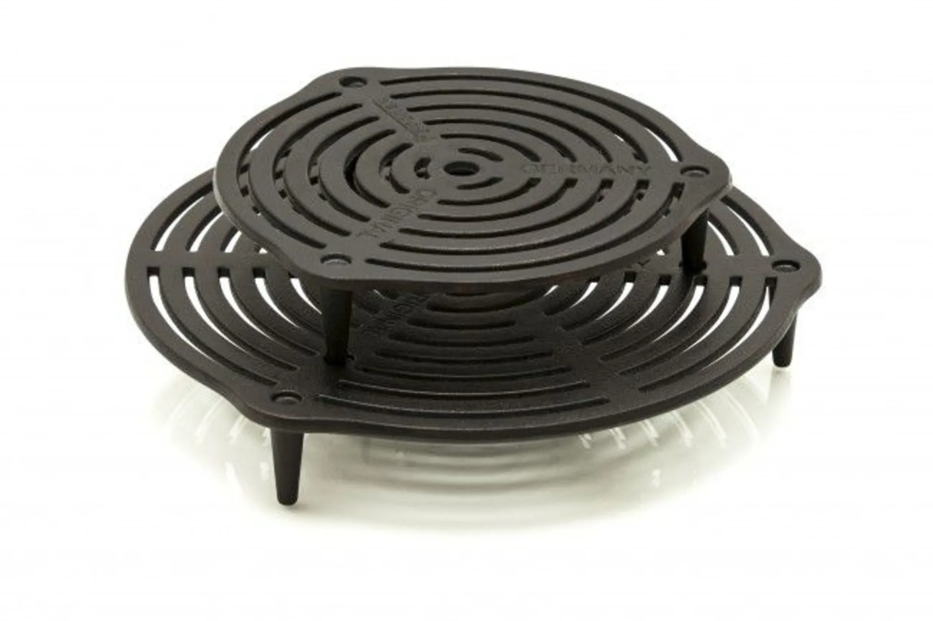 La grande grille empilable en fonte n'élargit pas seulement la gamme Petromax, elle te procure aussi une grande expérience de cuisson en plein air : la grande grille empilable en fonte pour le pot à feu à partir de la taille ft12 te permet de maintenir les aliments cuits du bouillon dans le pot. La grande grille empilable peut également être utilisée - grâce aux propriétés matérielles idéales de la fonte et aux trois pieds - pour griller directement dans les braises ou pour faire du smoke dans le pot à feu. Les creux intelligemment placés sur le dessus rendent le grand insert empilable en toute sécurité, aussi bien dans sa taille qu'avec la petite grille empilable gr-s. Caractéristiques techniques L x H x P (en cm) : 30 x 5 x 30 L x H x P avec emballage (en cm) : 31,5 x 5,5 x 31,5 Poids (en g) : 2000 Poids avec emballage (en g) : 2300 Contenu de la livraison 1 x grille empilable en fonte gr-s30