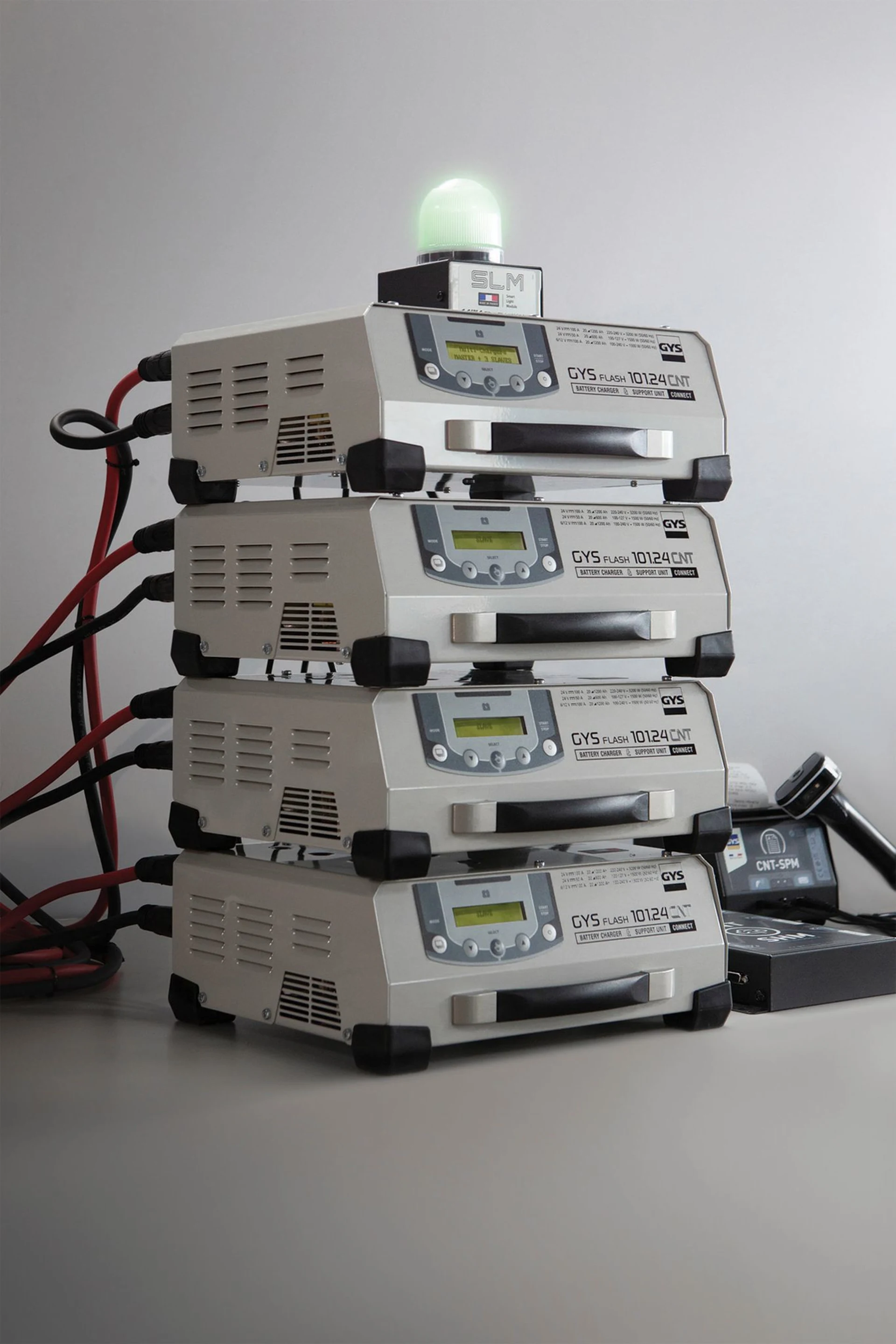 - Das SHM steuert parallel geschaltete identische GYSFLASH CNT-Ladegeräte, so dass Sie ein extrem leistungsstarkes Ladegerät erhalten. Für diese Funktion muss er mit dem Power Hub Module (PHM - ref. 056589) verbunden werden, das den Leistungsteil verwaltet.