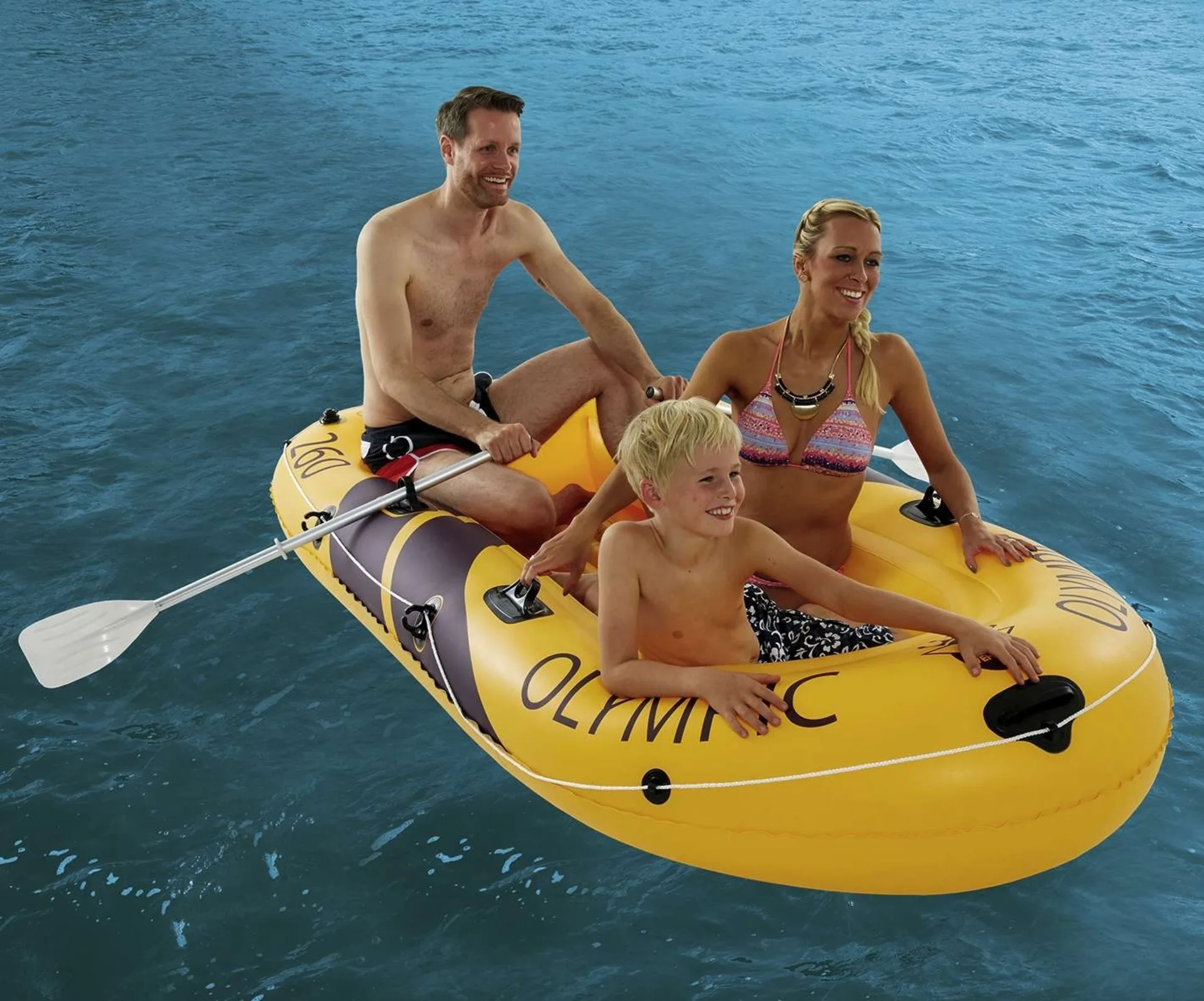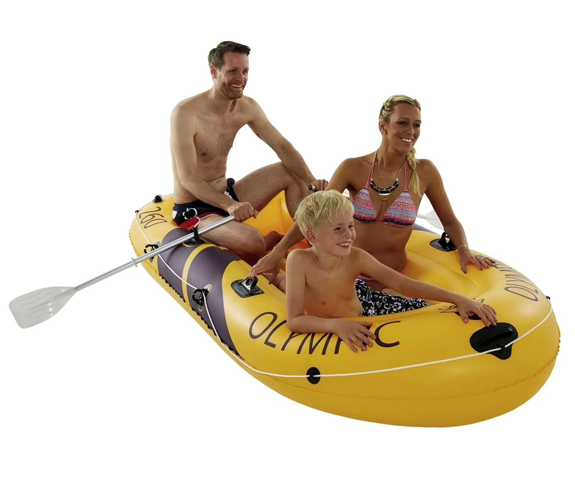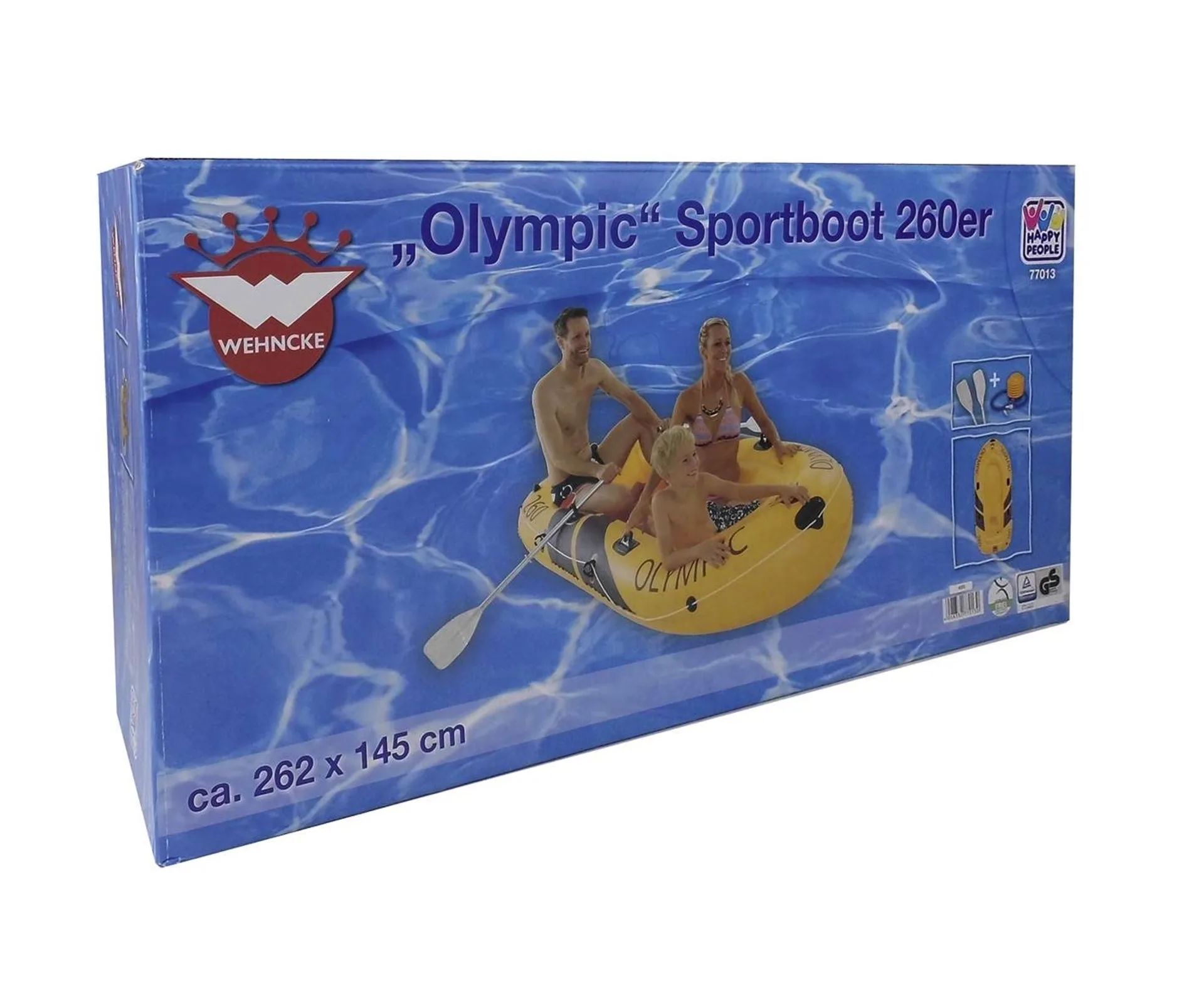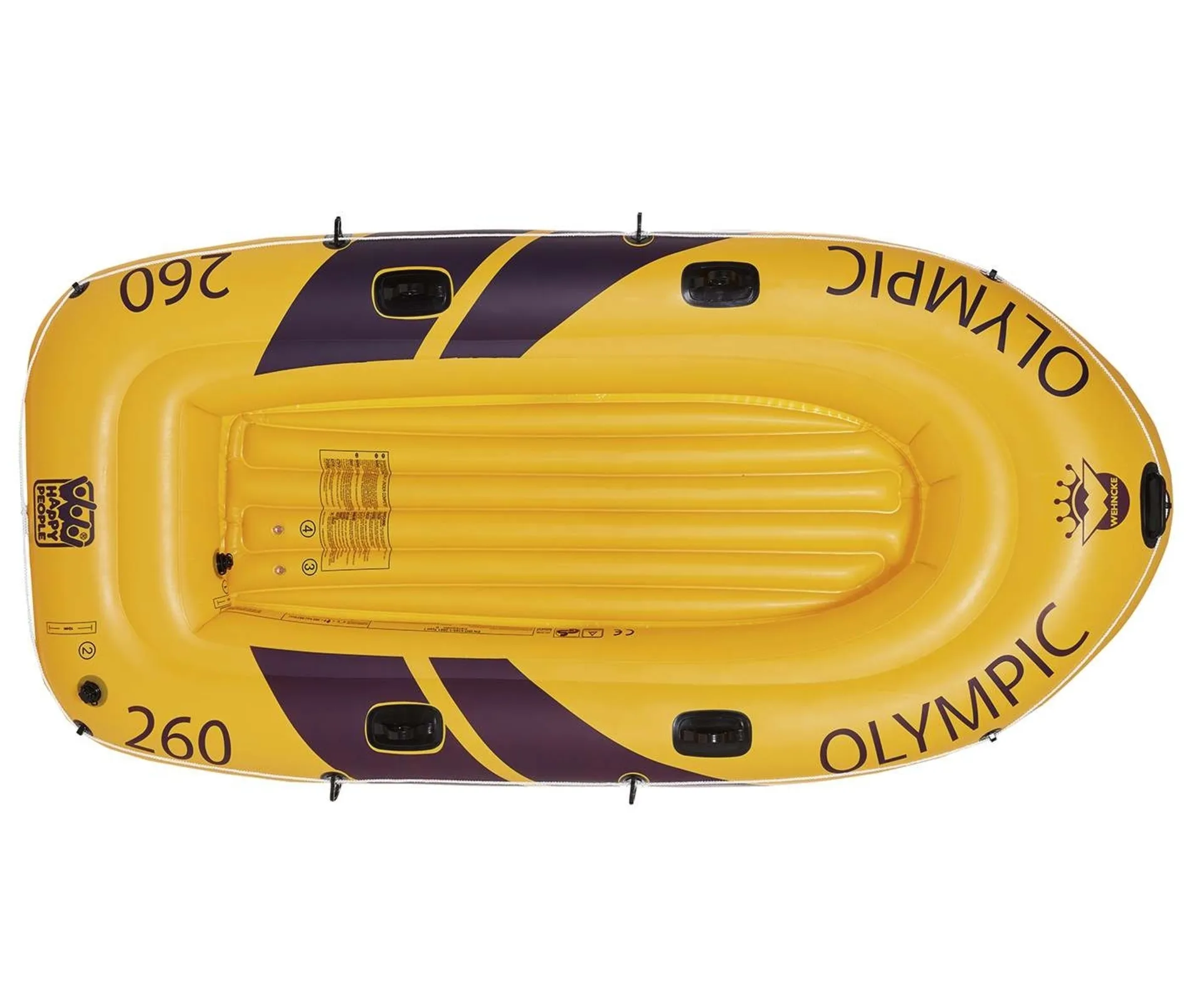 Mit dem Sport-Schlauchboot Olympic von Happy People macht den nächsten Familienausflug ans Wasser zu einem unvergleichlichen Erlebnis. Es bietet ausreichend Platz für zwei Erwachsene und ein Kind und ist bis zu ca. 265 kg belastbar. Mit insgesamt 4 Kammern davon 2 Haupt-und zwei Bodenkammern, die sich einzeln aufpumpen lassen garantiert es maximale Sicherheit und Stabilität auf dem Wasser.