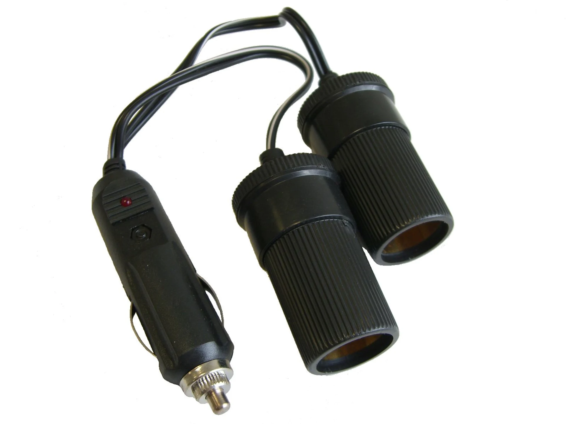 Praktisches 2-fach Verteiler-Set mit LED-Zigarettenanzünderstecker mit eingebauter 10 Amp Sicherung und Anschlusskabel 15 cm.