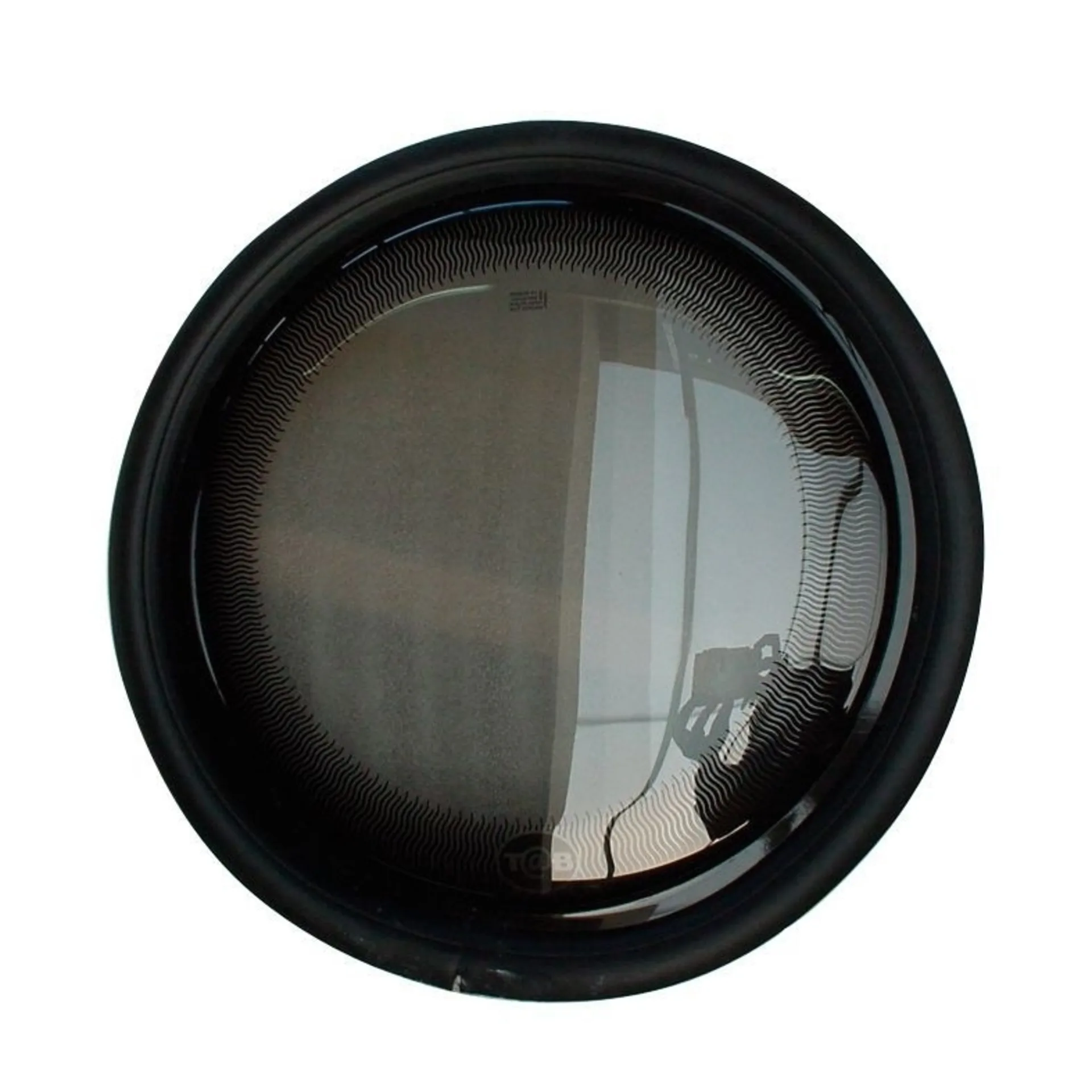 Hublot en verre acrylique gris avec sérigraphie noire, sans accessoires.