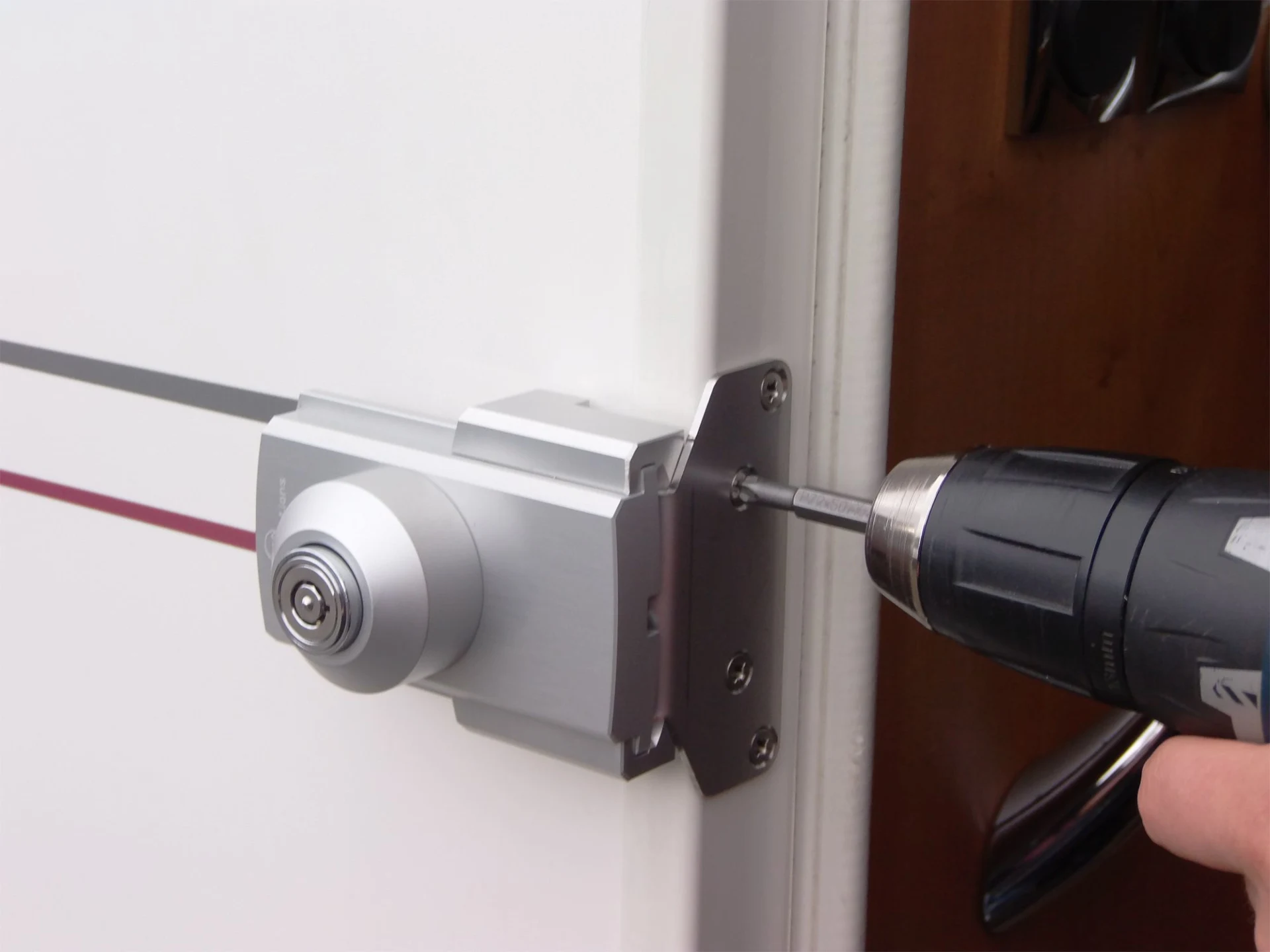 - Se fixe à la "vitre" du cadre de la porte à l'aide de 4 vis !