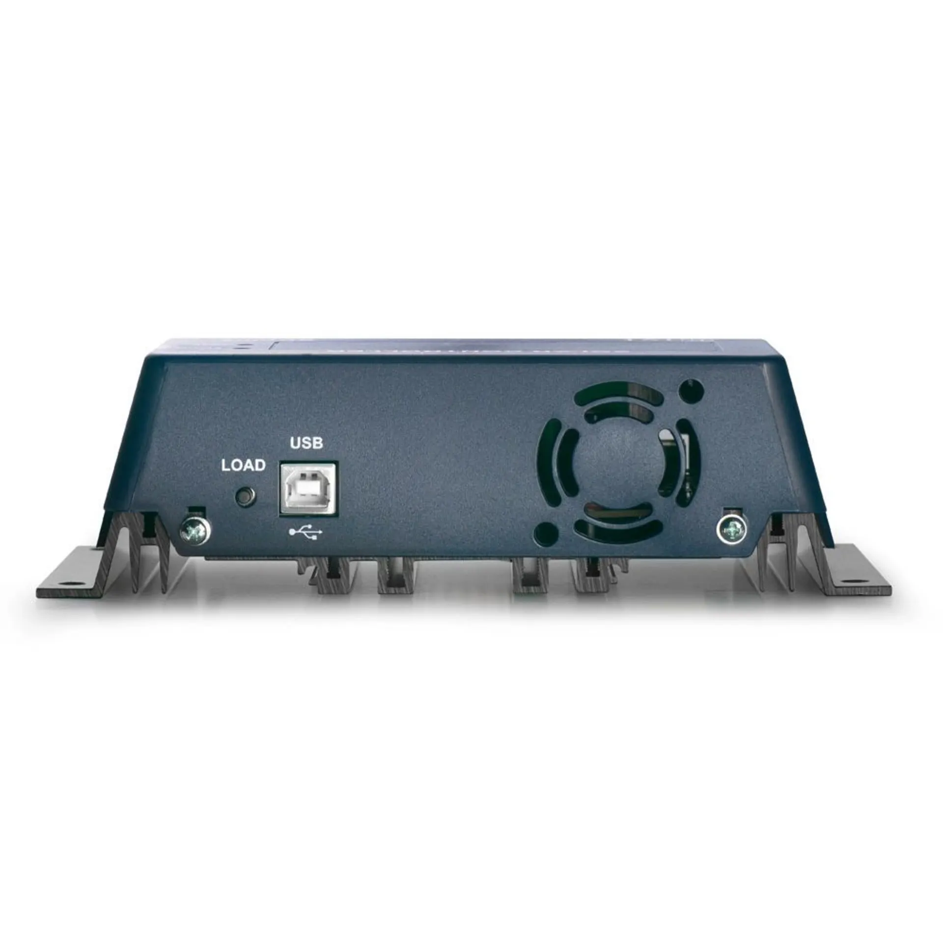Parametrierung und Überwachung des Solar-Controllers mittels PC: Mithilfe der USB-Schnittstelle kann eine Verbindung zwischen Solar-Controller und PC aufgebaut werden. Mit der Windows-Software können am PC bequem Ladeprofil, Tiefentladeschutz, Temperaturkoeffizient, Funktion des Lastausgang, Uhrzeit und Datum konfiguriert werden. Zudem können die Betriebsdaten der Solaranlage protokolliert, überwacht und zur Auswertung als *.txt-Datei ausgegeben werden.