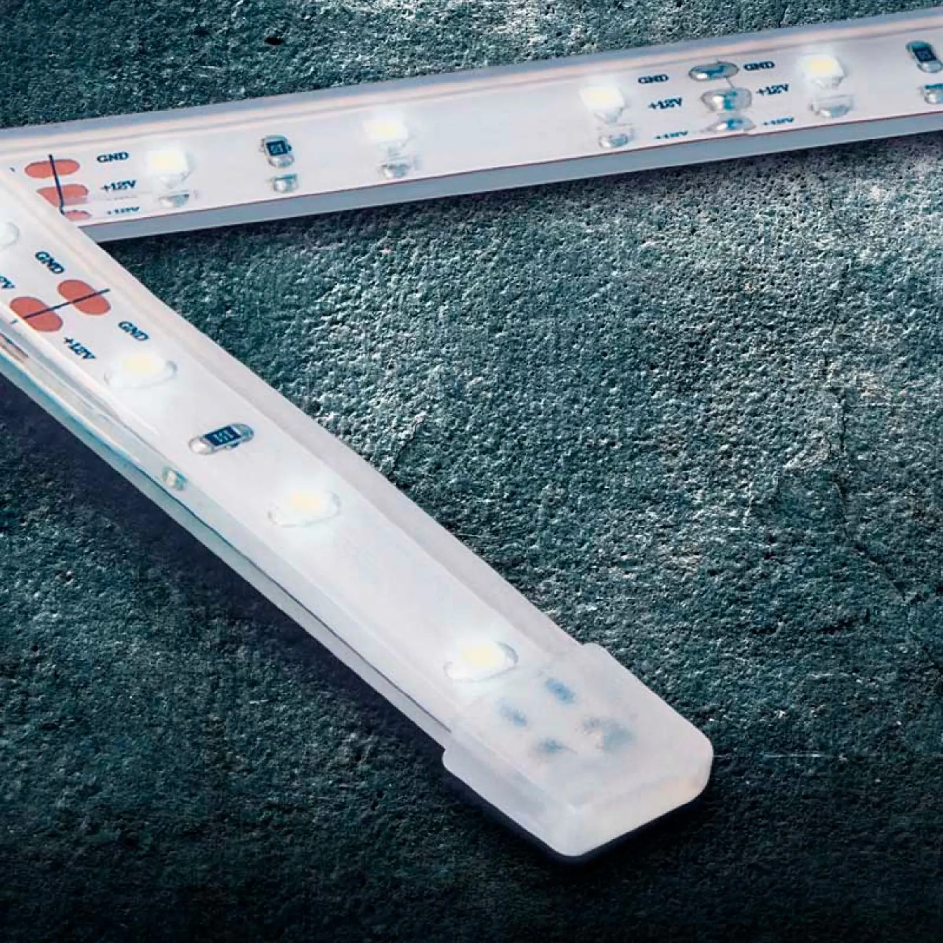 Der äußerst flexible LED Streifen ist ideal für gewölbte Flächen und geringe Einbauhöhen geeignet. Bei Bedarf kann er individuell auf die von Ihnen gewünschte Länge gekürzt werden. Dabei sollten Sie jedoch beachten, dass der zugeschnittene LED Streifen nach der Kürzung den spezifizierten IP Grad nicht mehr besitzt.