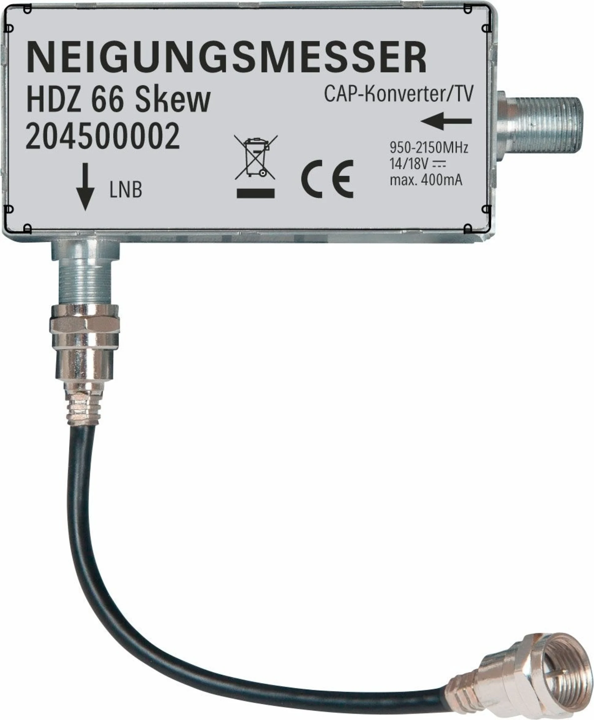 Le montage de l'inclinomètre se fait en un tour de main à l'arrière du boîtier LNB du BAS 66 et du BAS 66 Skew. En combinaison avec le convertisseur CAP, l'adaptateur WLAN USB UFZ 132 et les instructions sonores de l'application "CAPcontrol", l'orientation de l'antenne devient un jeu d'enfant. L'élévation théorique et l'élévation réelle sont affichées dans le menu du récepteur et dans l'app "CAPcontrol".L'affichage de l'élévation est également possible avec le skew réglé.