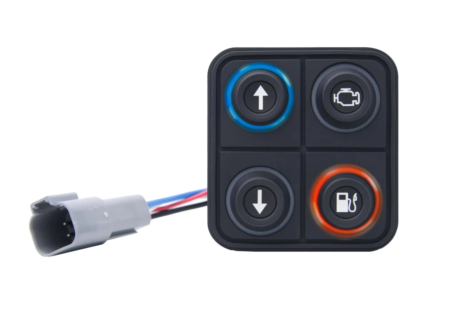 Die Tastatur von BLINK mit 4 Drucktasten (15mm) bietet durch seine robuste und kompakte Bauweise viele Einsatzmöglichkeiten. Dank des IP67 Schutzes kann das Keypad problemlos im Innen- und Aussenbereich eingesetzt werden, ist komplett vergossen und säurebeständig.