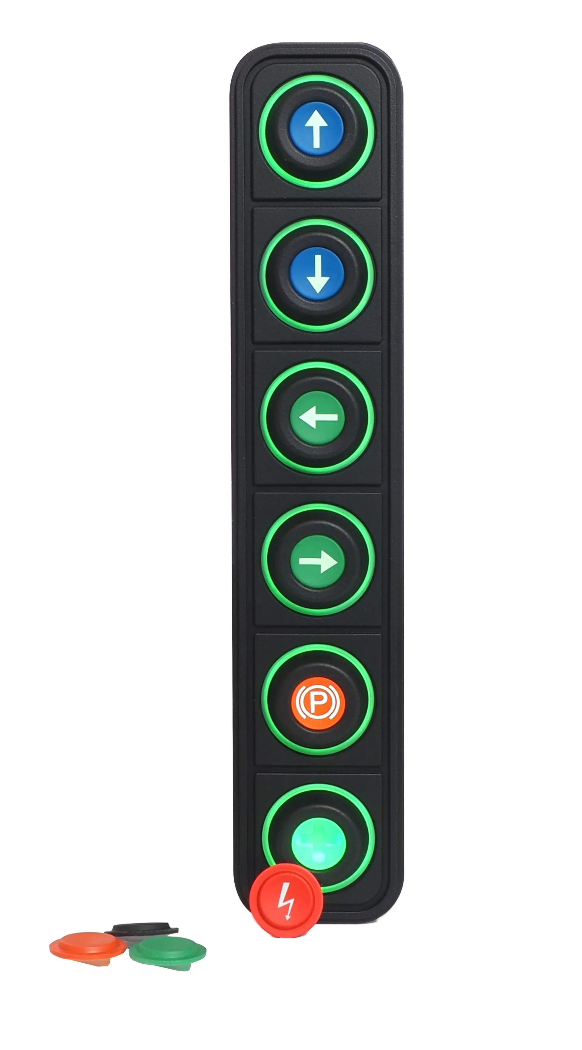 Symboleinsätze können selber zusammengestellt und ausgetauscht werden. Dank der Kommunikation über CAN-Bus (J1939 und CANopen umschaltbar), kann das Keypad so Beispielsweise einfach in eine MRS Steuerung integriert werden, dies mit minimalem Verkabelungsaufwand und maximaler Flexibilität.