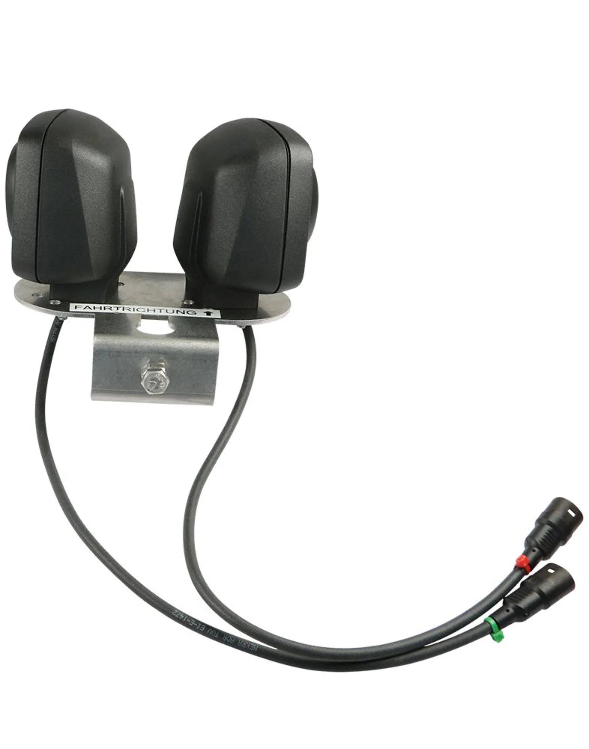 Kit de caméra pré-assemblé avec connecteur ABS : - Equerre de montage pour boîte ABS- - Boîte ABS pour deux caméras - Câble de connexion directe - Support de caméra avec deux caméras CMOS 70° Connecteur pour lampe d'avertissement allemand DT 2P (F) max 9 W 50 cm de long