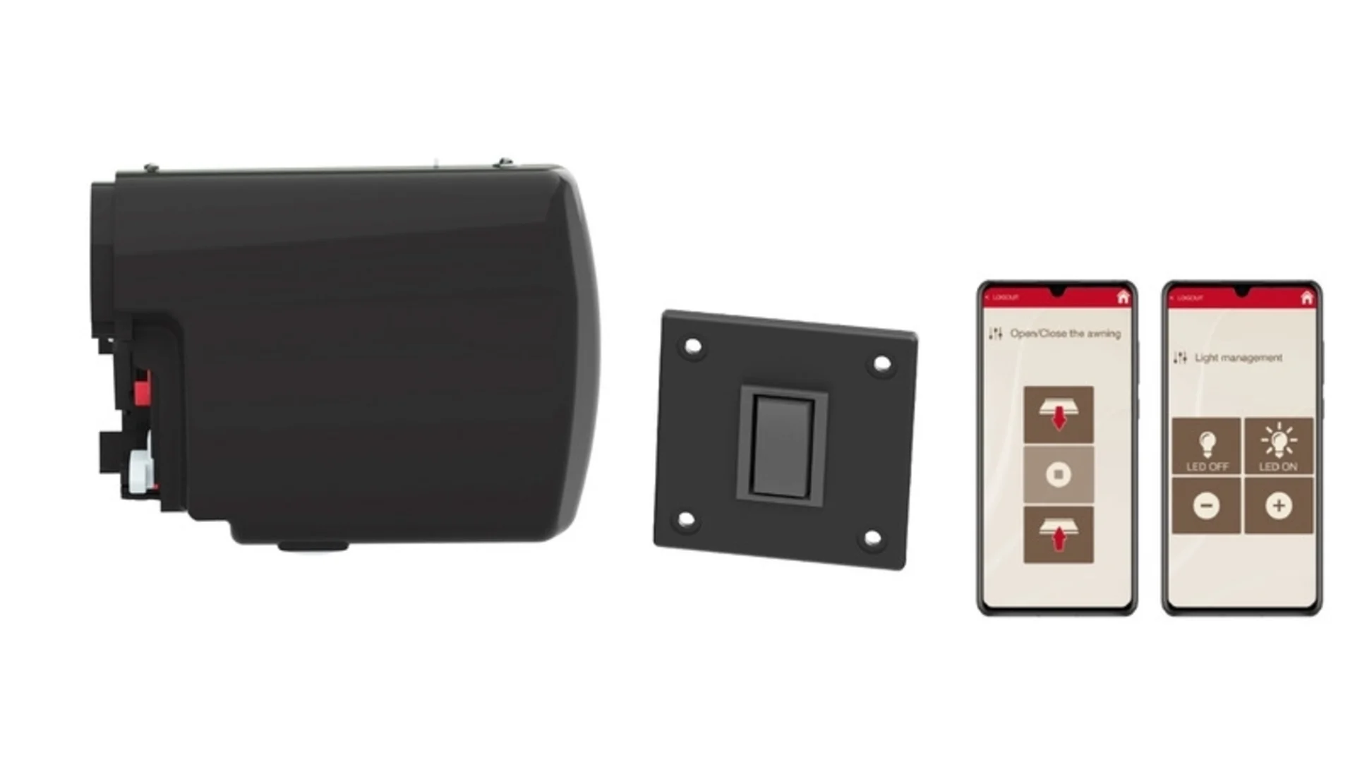 Les kits de moteur pour F45S, F45L se montent sur le côté du store à la place du mécanisme existant. La version Advanced peut être commandée par smartphone. La largeur du store augmente ainsi de 13 cm. S'il n'y a pas de courant, un fonctionnement d'urgence par manivelle est toujours possible.